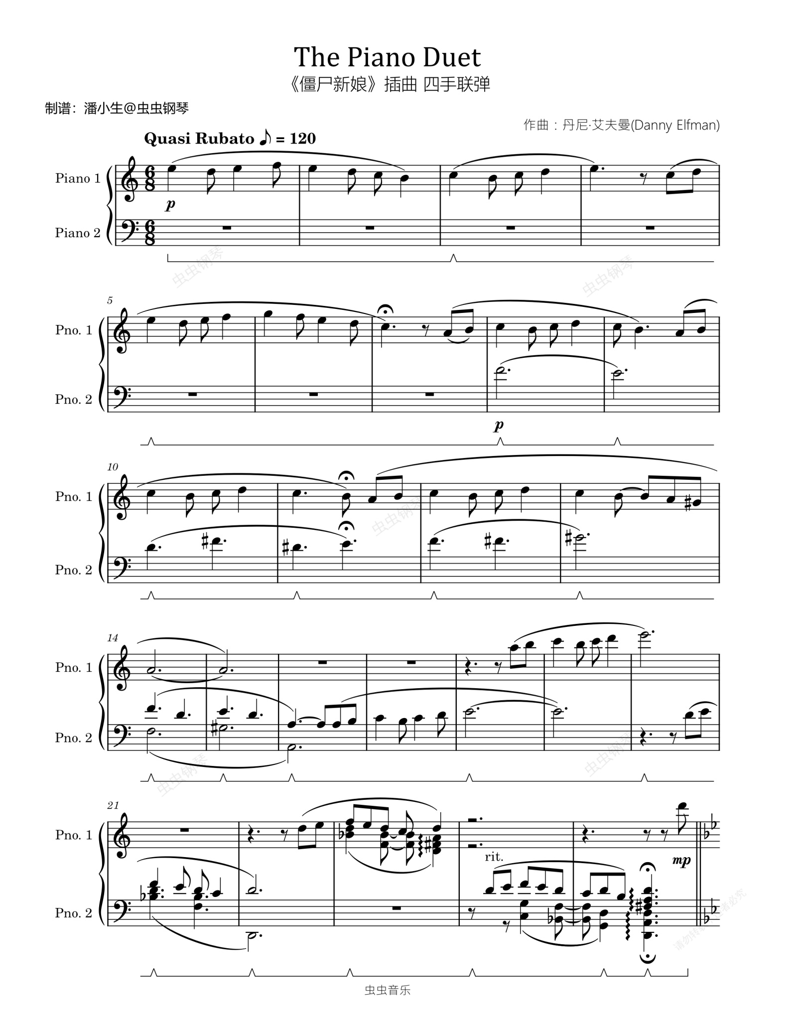 钢琴谱:《僵尸新娘》插曲 四手联弹 The Piano Duet (Tim Burton's Corpse Bride)