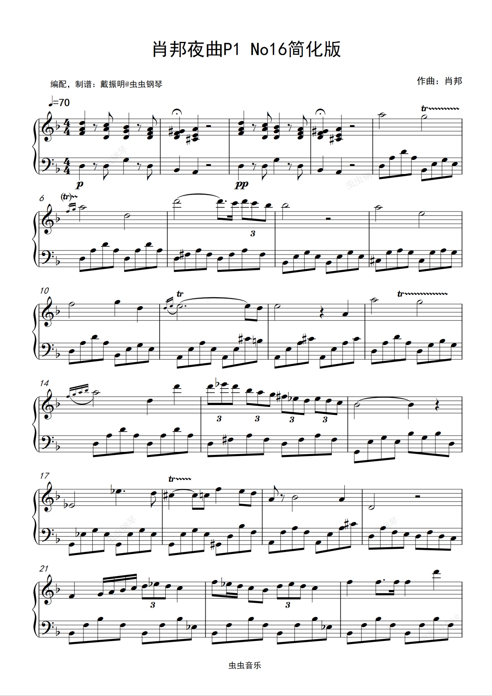 钢琴谱:肖邦夜曲P1 No16简化版