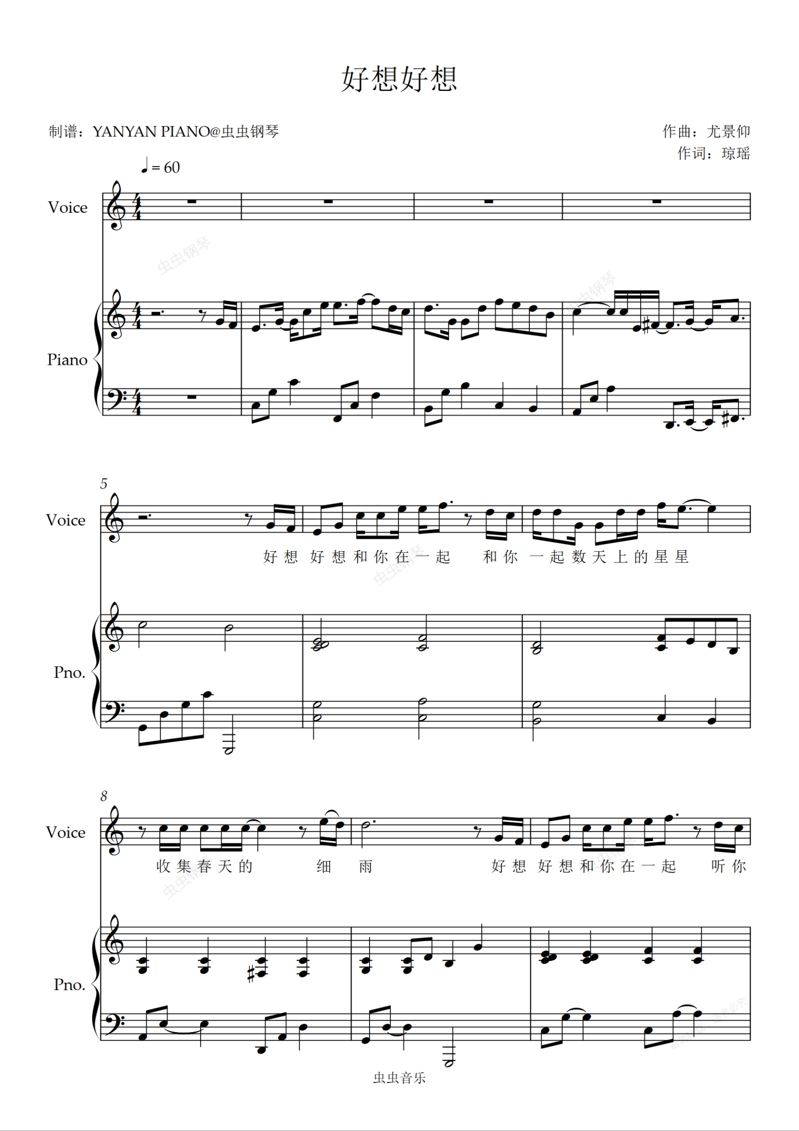 钢琴谱:钢琴弹唱【好想好想】古巨基-情深深雨濛濛