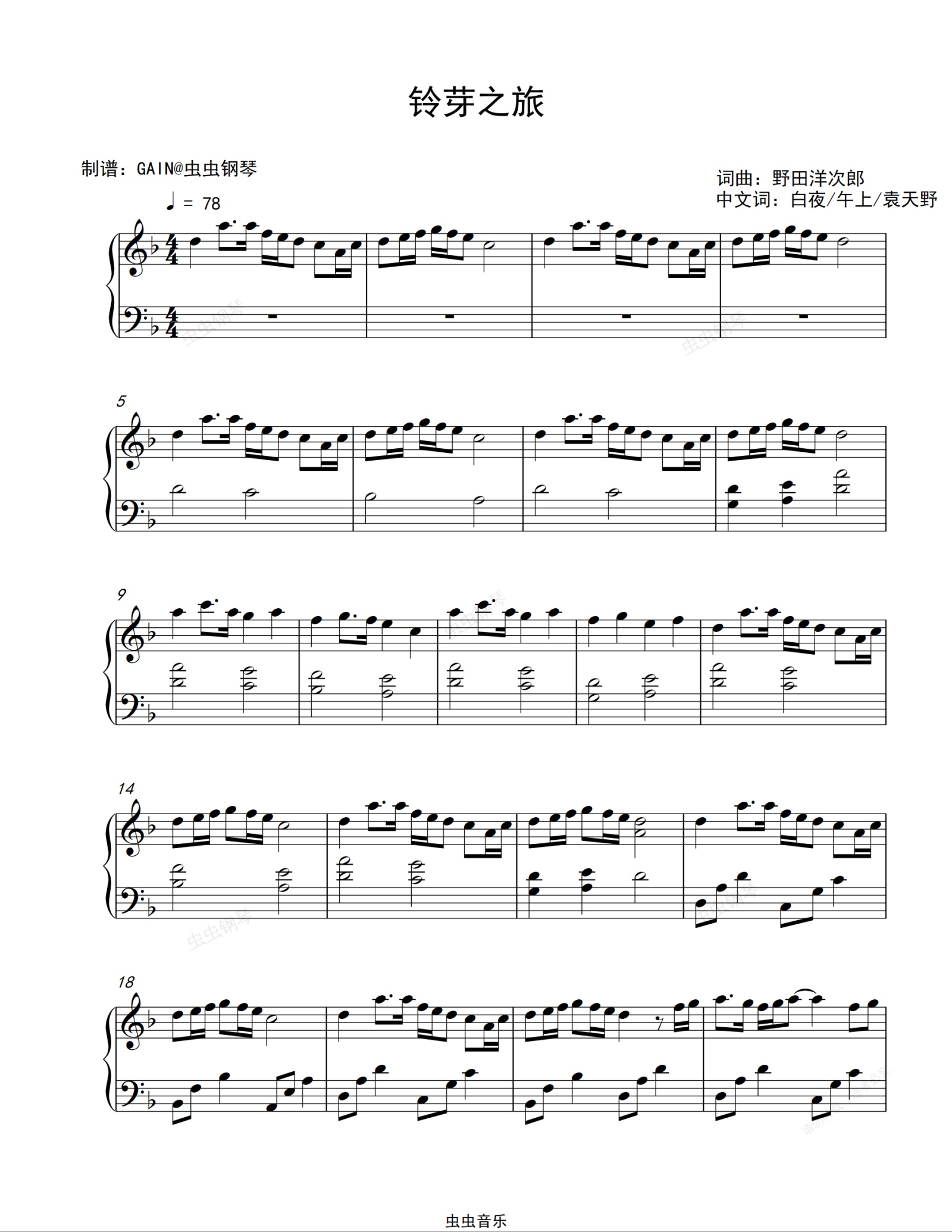 钢琴谱:铃芽之旅-简单完整版-周深
