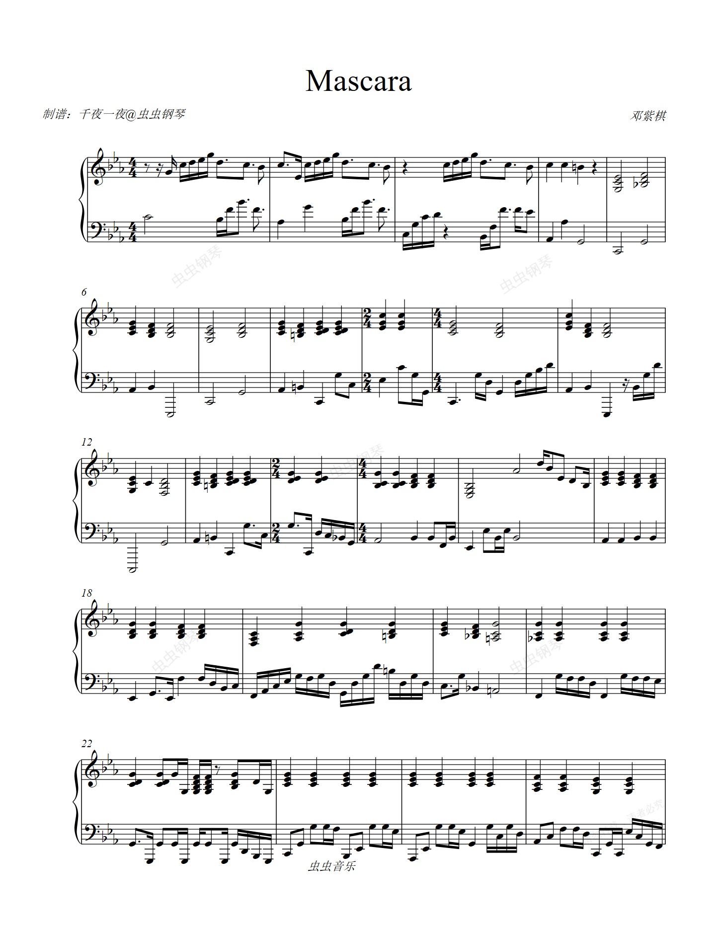 钢琴谱:G.E.M.邓紫棋 - Mascara(烟熏妆)