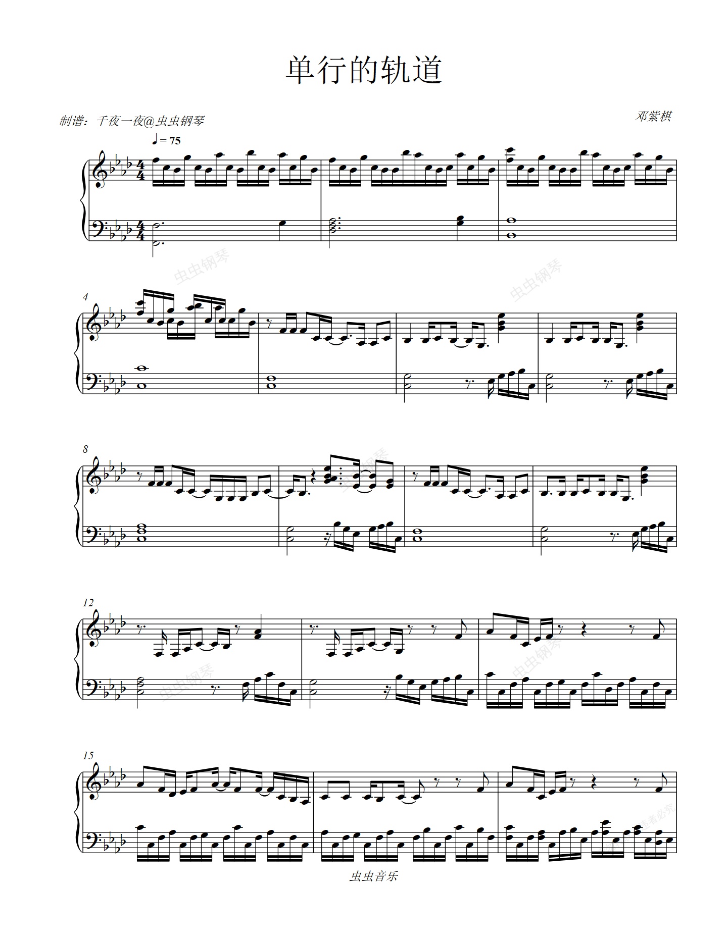 钢琴谱:GEM邓紫棋《单行的轨道》(金曲捞之挑战主打歌)