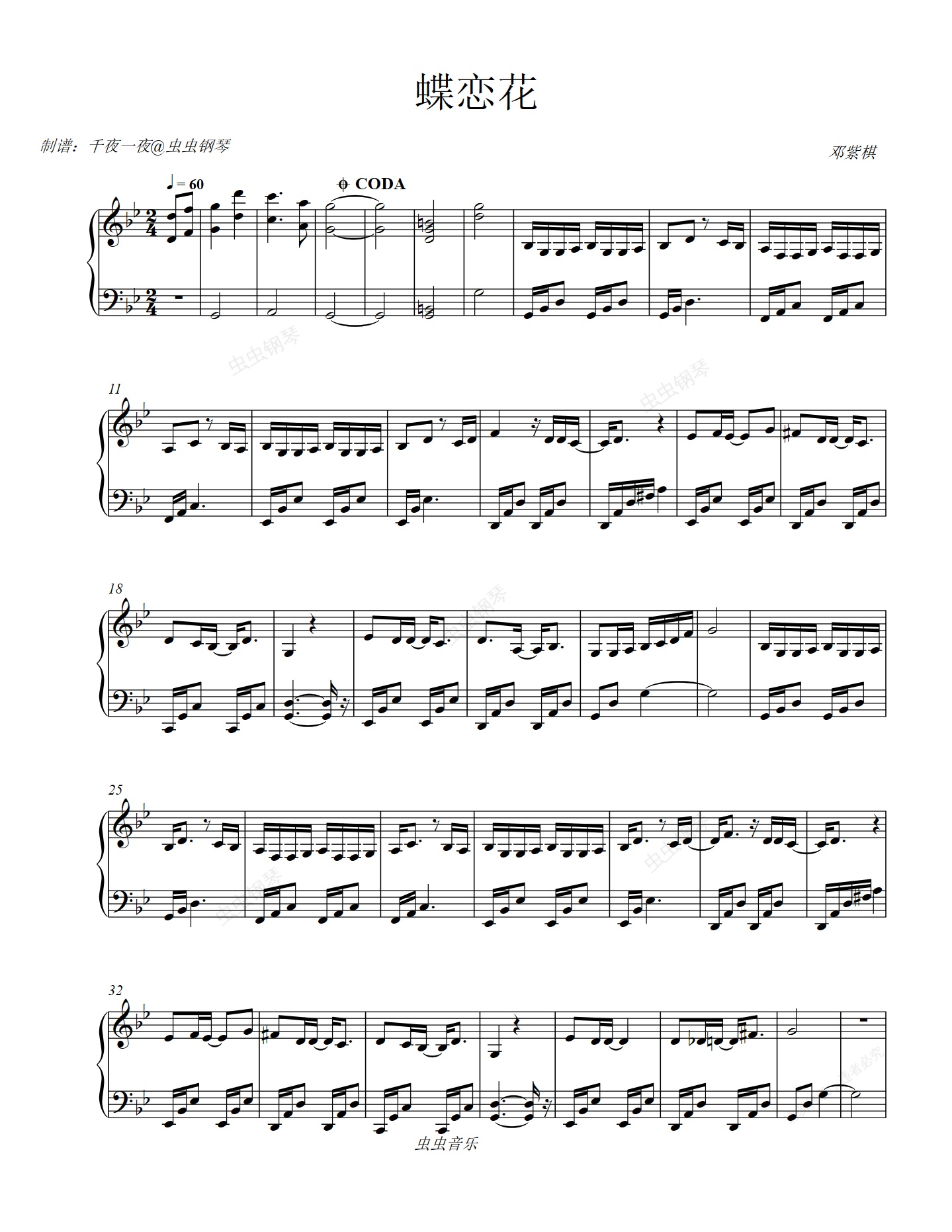 钢琴谱:邓紫棋演唱《天龙八部》主题曲《蝶恋花》,很多人没有听过,好听