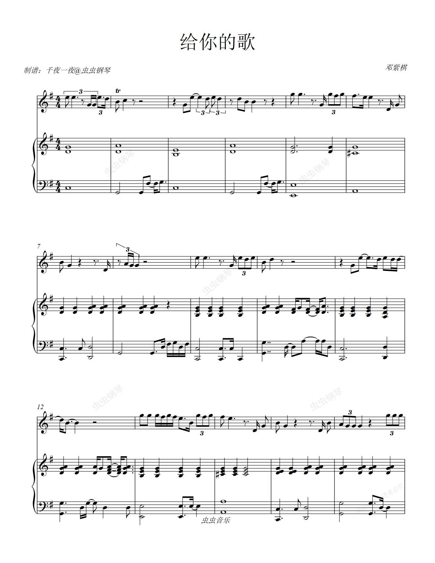 钢琴谱:《给你的歌》GEM邓紫棋