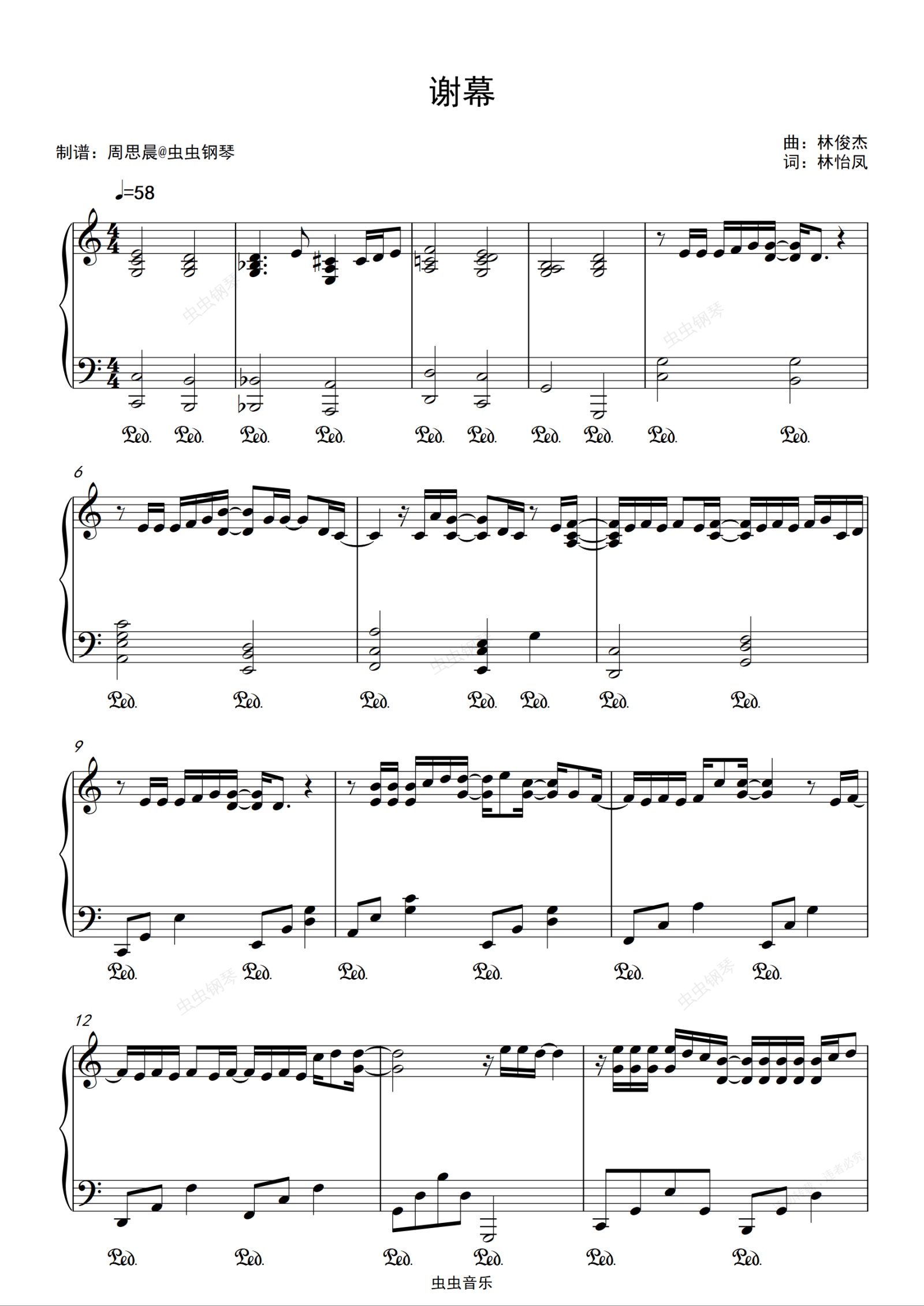 谢幕 林俊杰 C调完美演奏