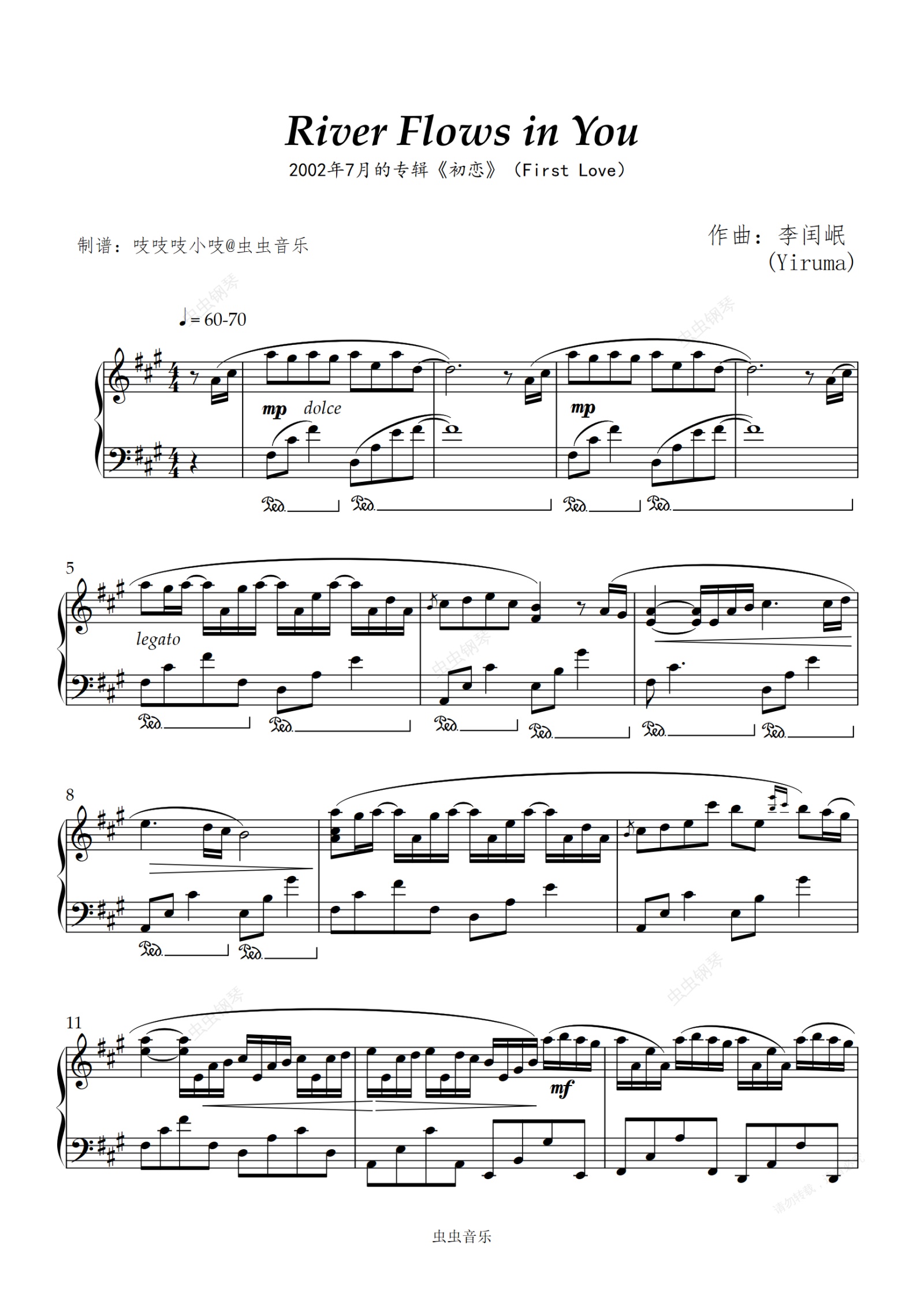 钢琴谱:River Flows In You 【演奏原版】【原调】 你的心河Yiruma