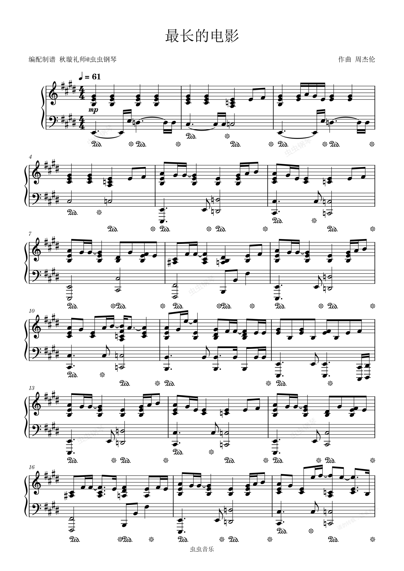 钢琴谱:[极限还原]原版-最长的电影