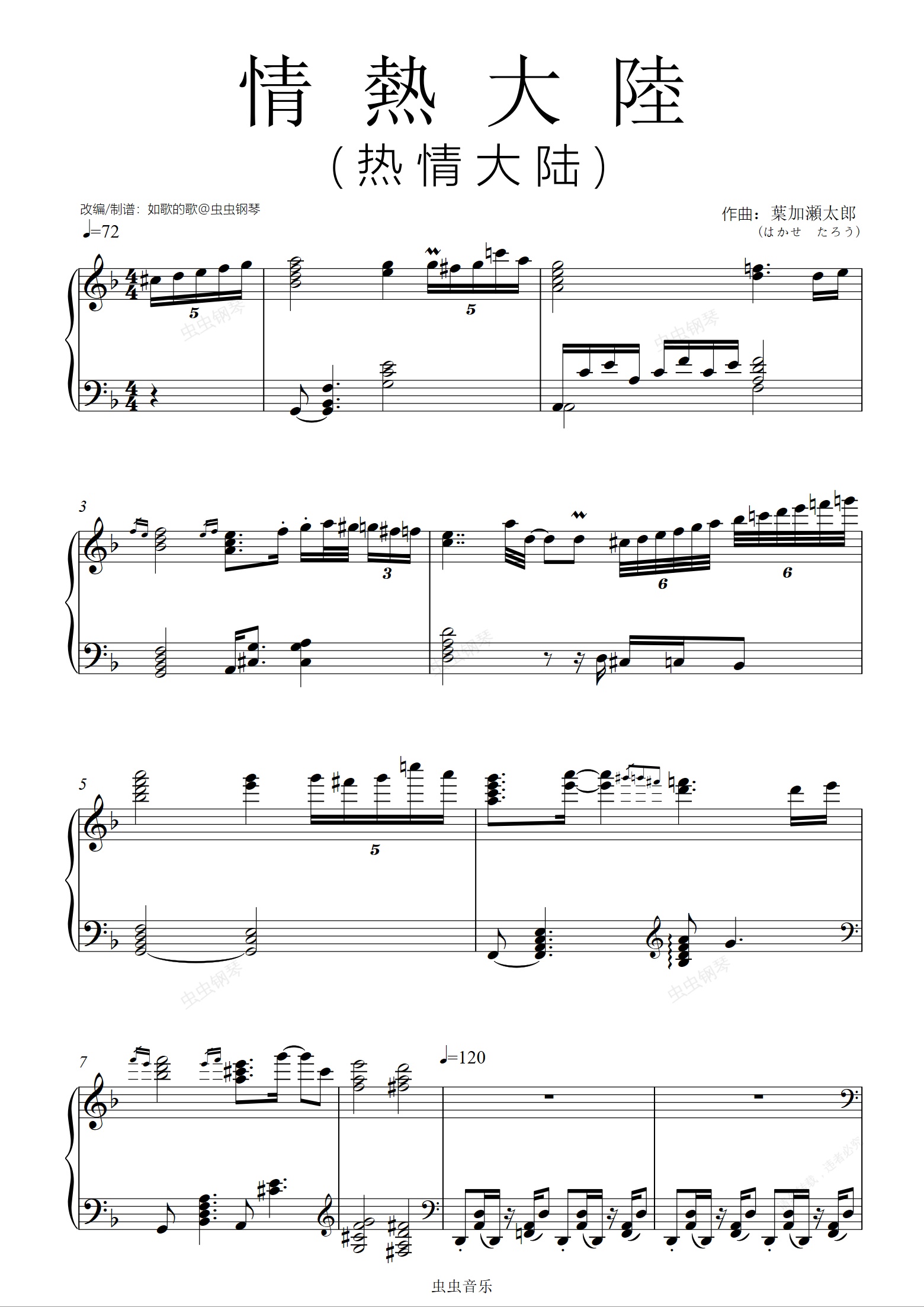 钢琴谱:情熱大陸(热情大陆)钢琴独奏复刻还原