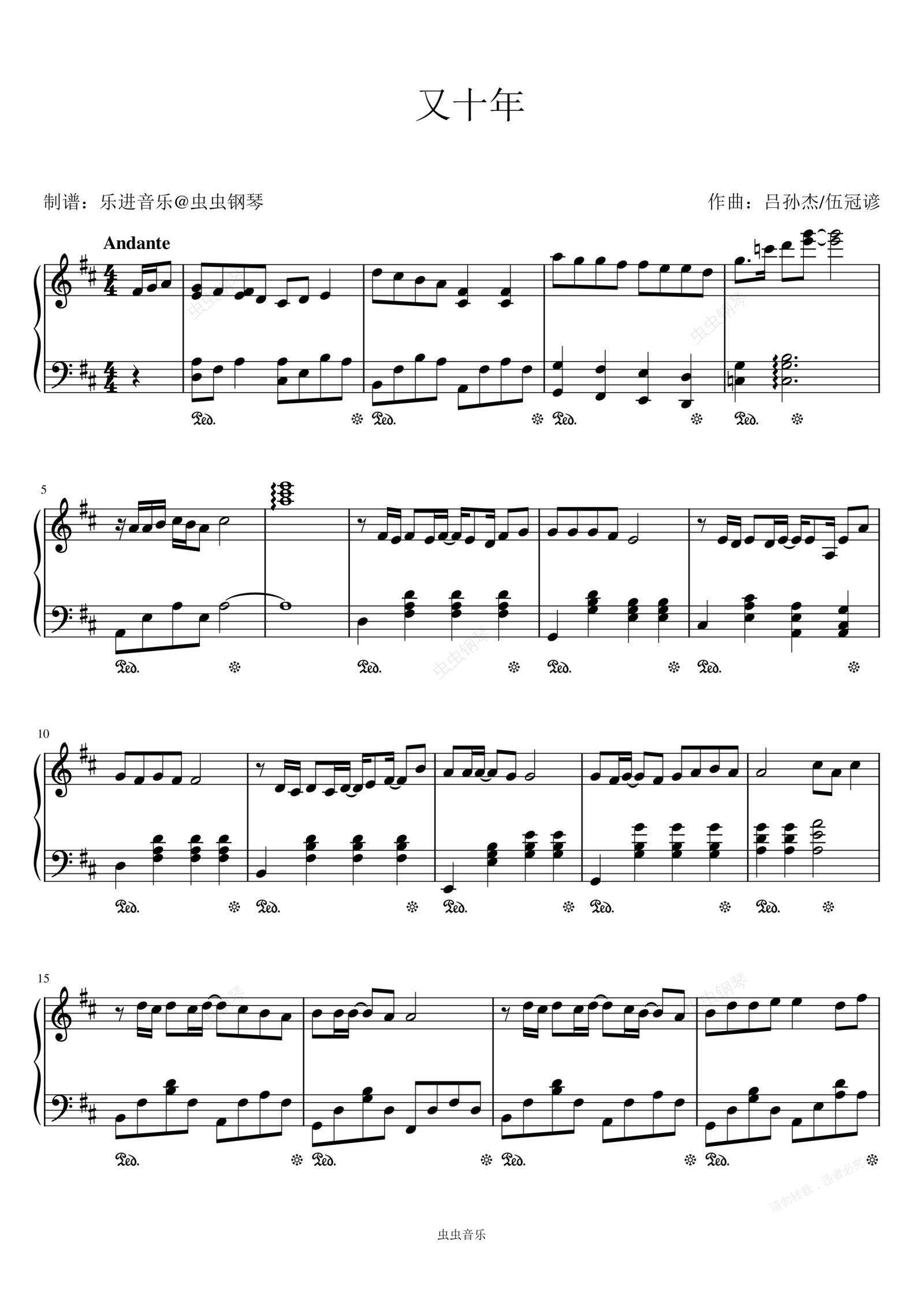 钢琴谱:《又十年》原调