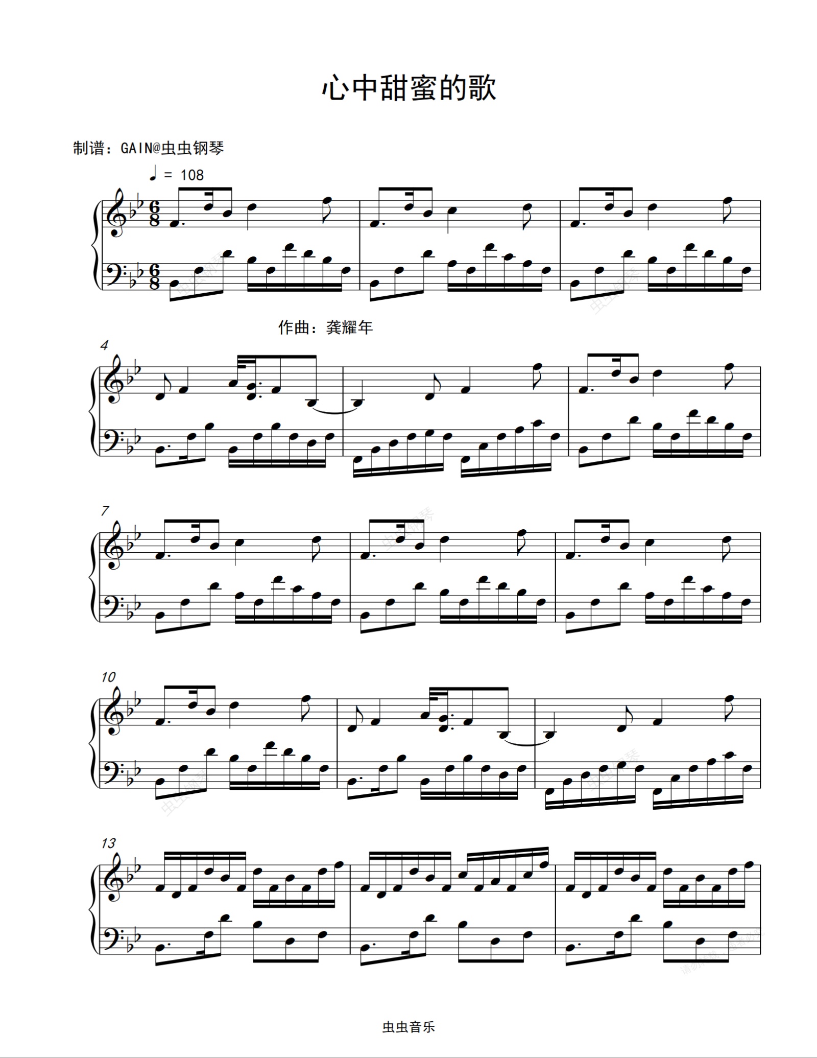 钢琴谱:心中甜蜜的歌-Sweet Songs in My Heart-龚耀年