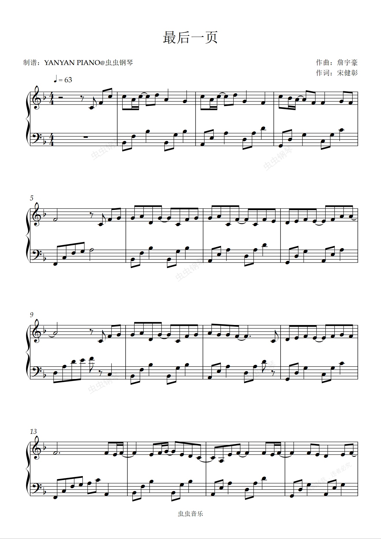 钢琴谱:好听易弹【最后一页】江语晨-熊猫人OST