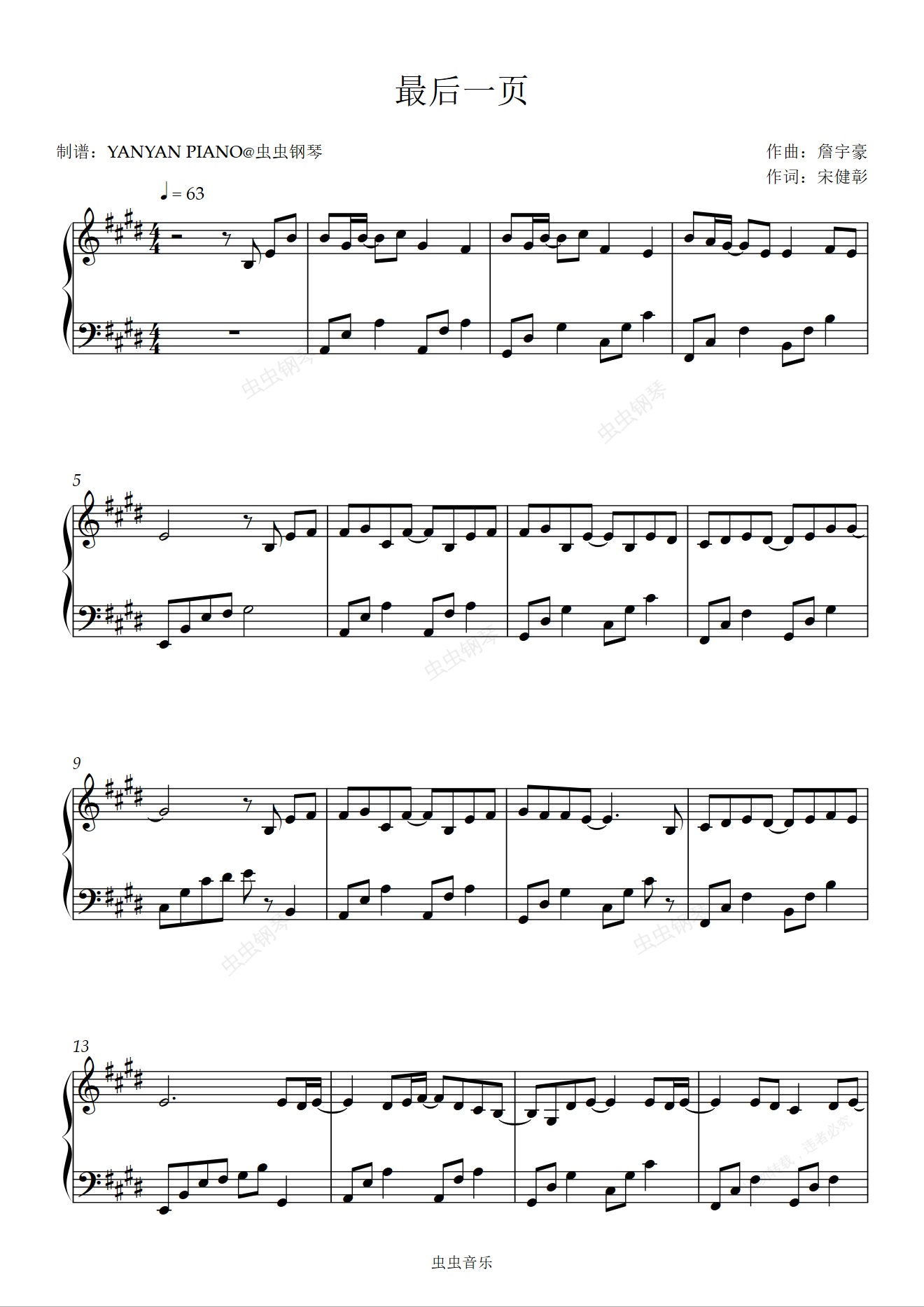 钢琴谱:好听易弹【最后一页】江语晨-熊猫人OST