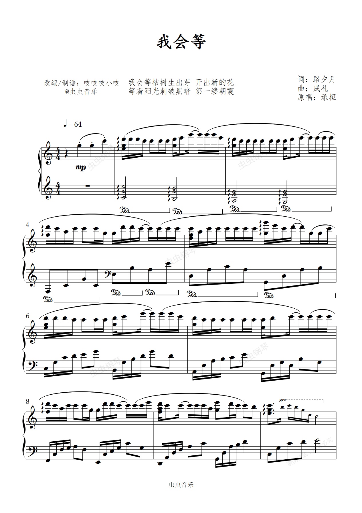 钢琴谱:我会等 【C调即兴深情版】【初级难度】 吱吱编配