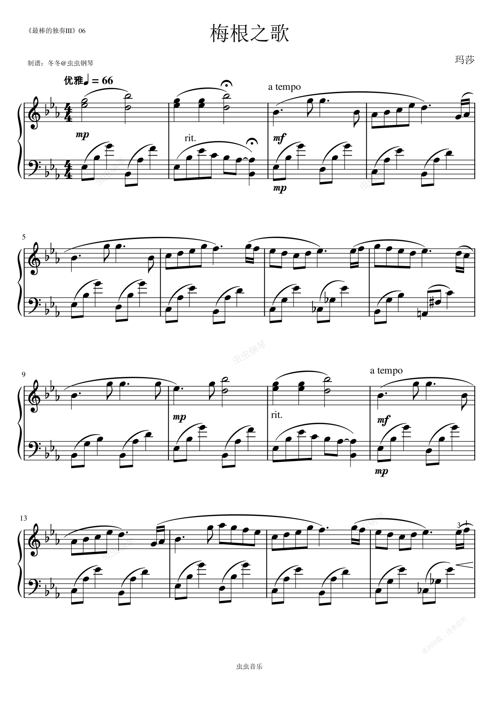 钢琴谱:梅根之歌