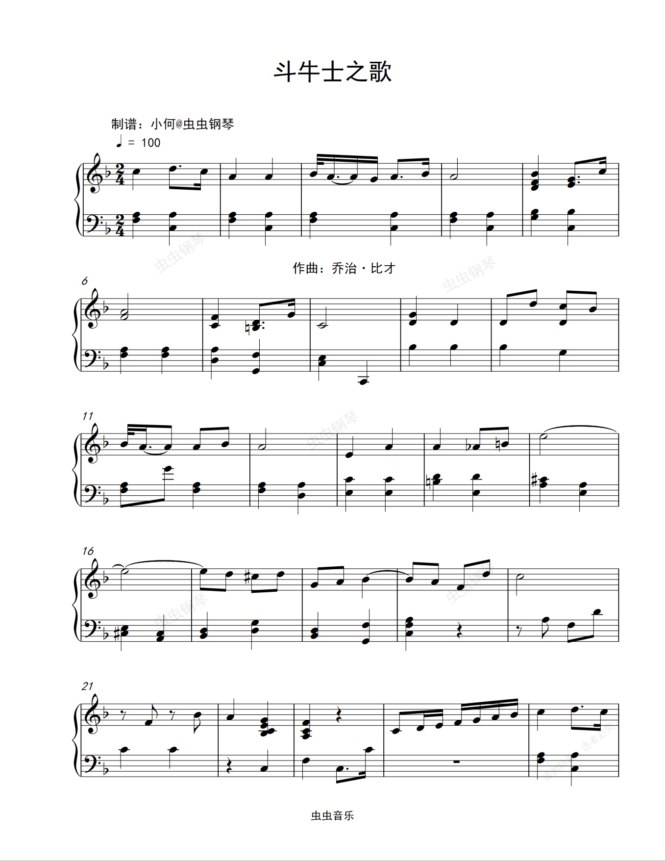 钢琴谱:斗牛士之歌—法国乔治·比才歌剧《卡门》第二幕-乔治·比才