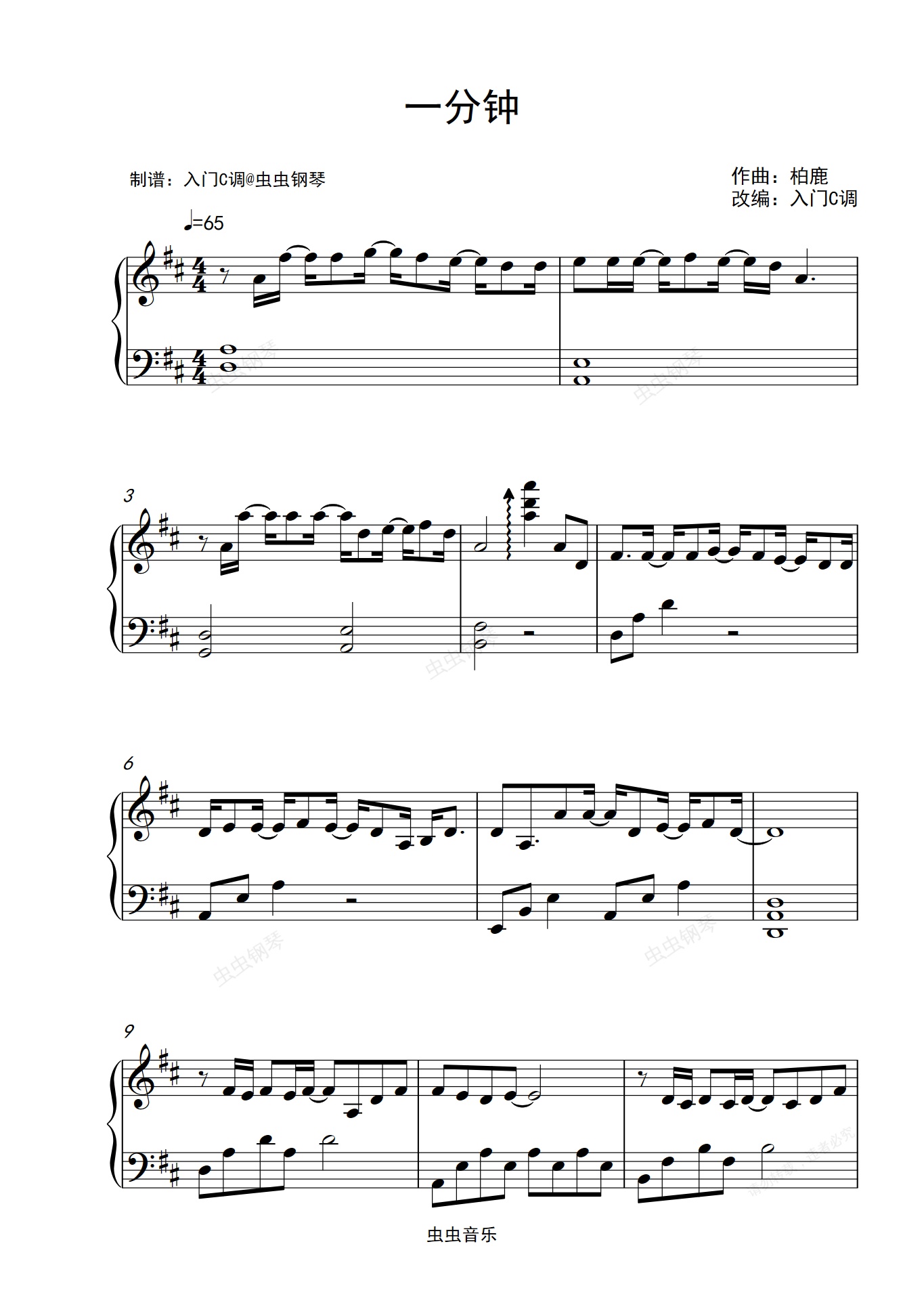 钢琴谱:《一分钟》(广播剧《某某》第二季插曲)原调抒情版