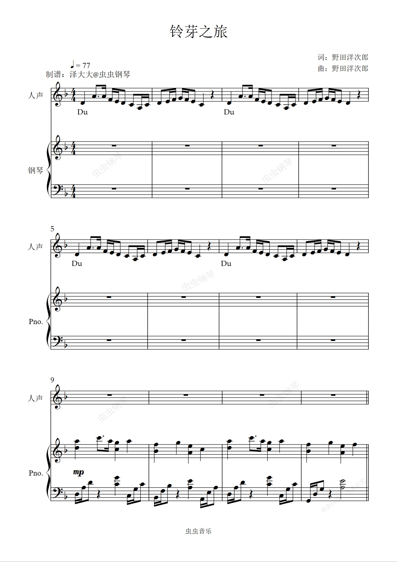 钢琴谱:铃芽之旅【原版弹唱附词】泽大大 周深