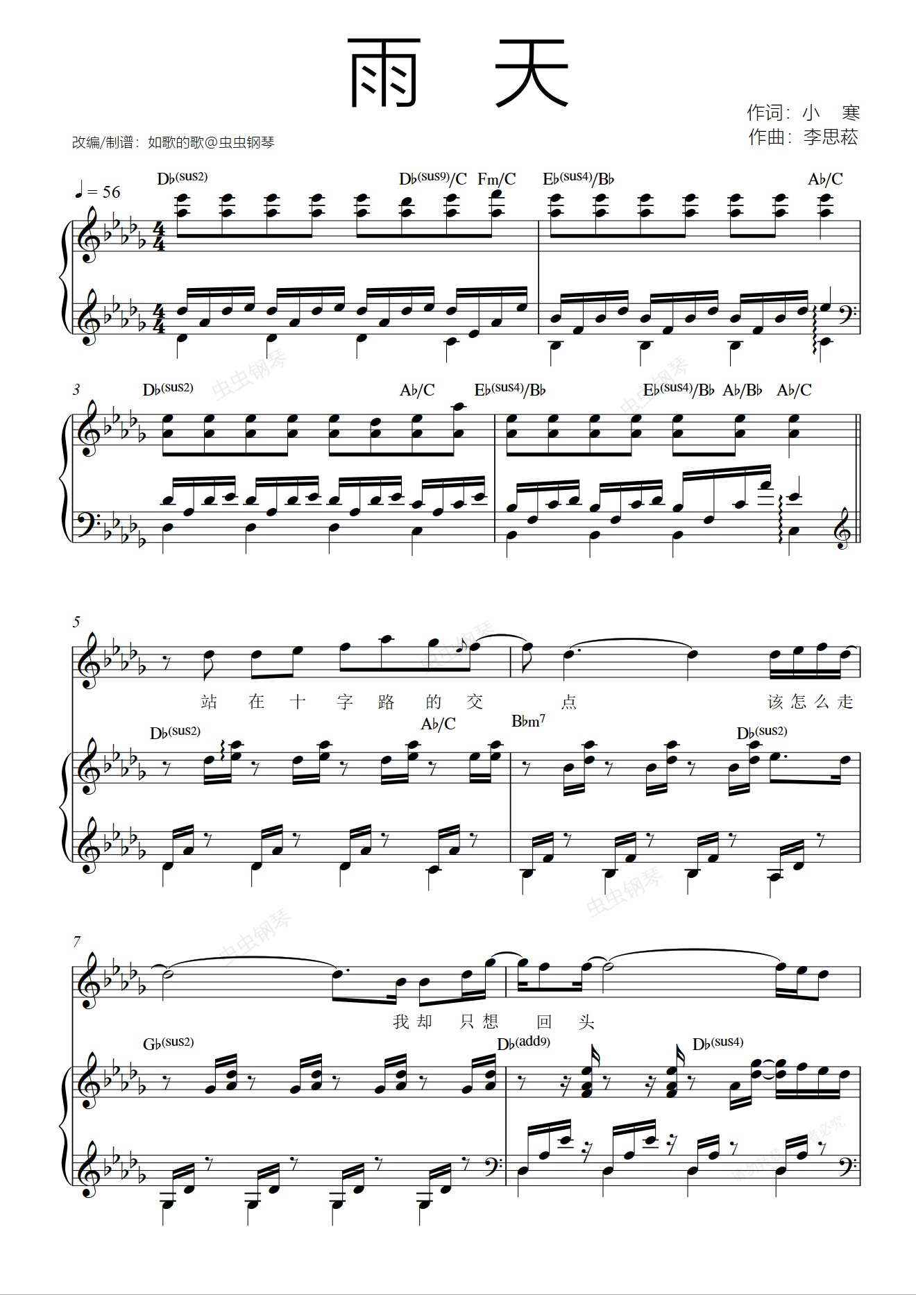 钢琴谱:雨天-孙燕姿原调旋律+钢伴复刻可弹唱