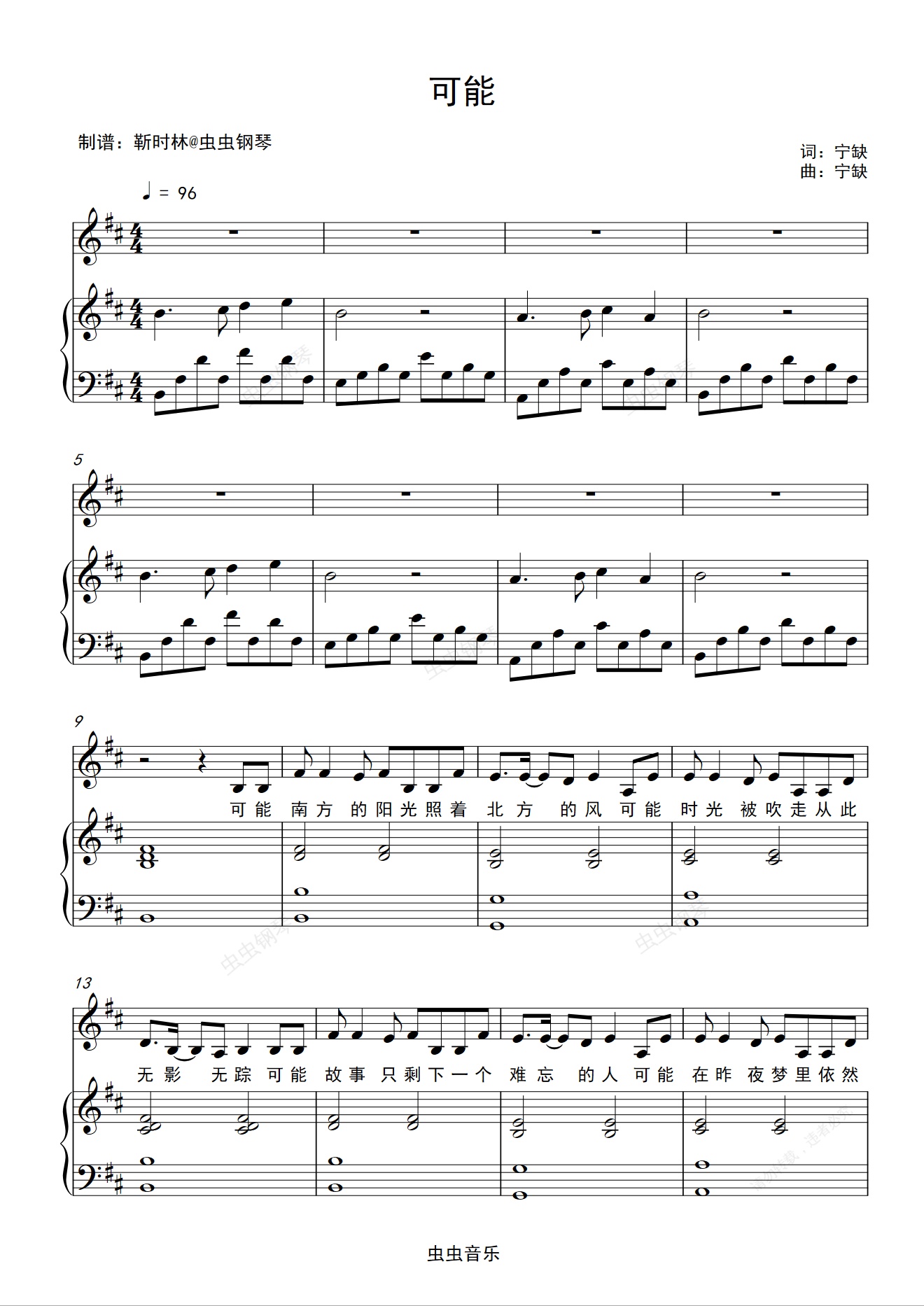 钢琴谱:《可能》程响 原调简易弹唱谱