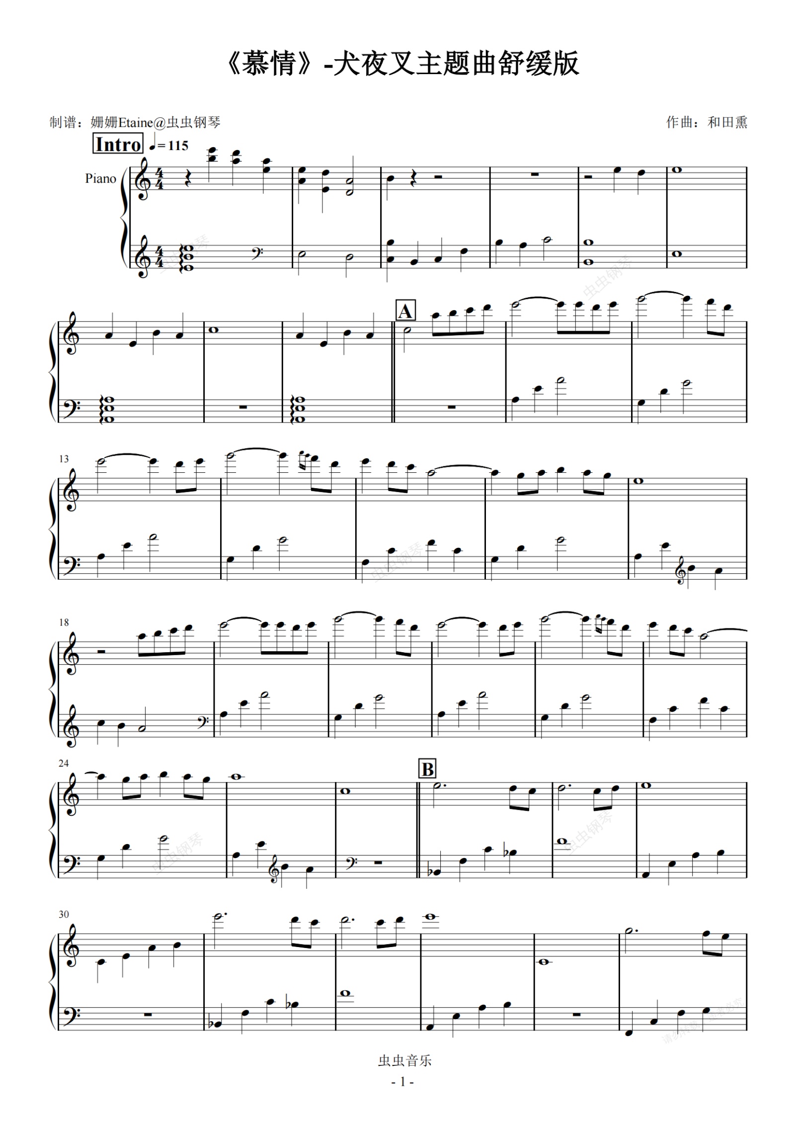 钢琴谱:《慕情》-犬夜叉主题曲舒缓版 钢琴谱 “彼岸花开开彼岸,奈何桥上可奈何”