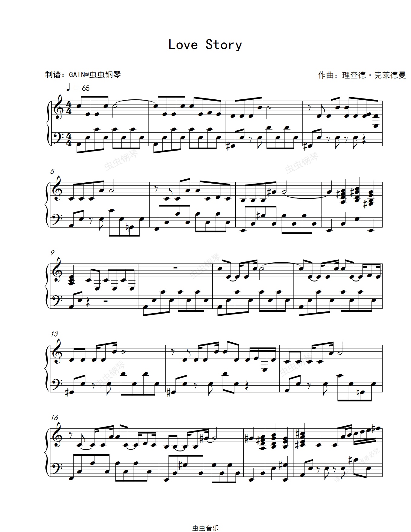 钢琴谱:Love Story-理查德克莱德曼
