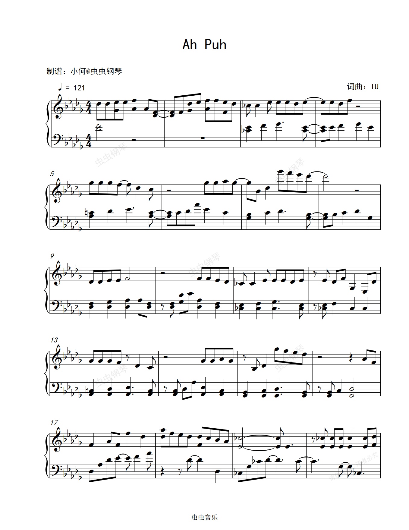 钢琴谱:Ah Puh-李知恩 IU
