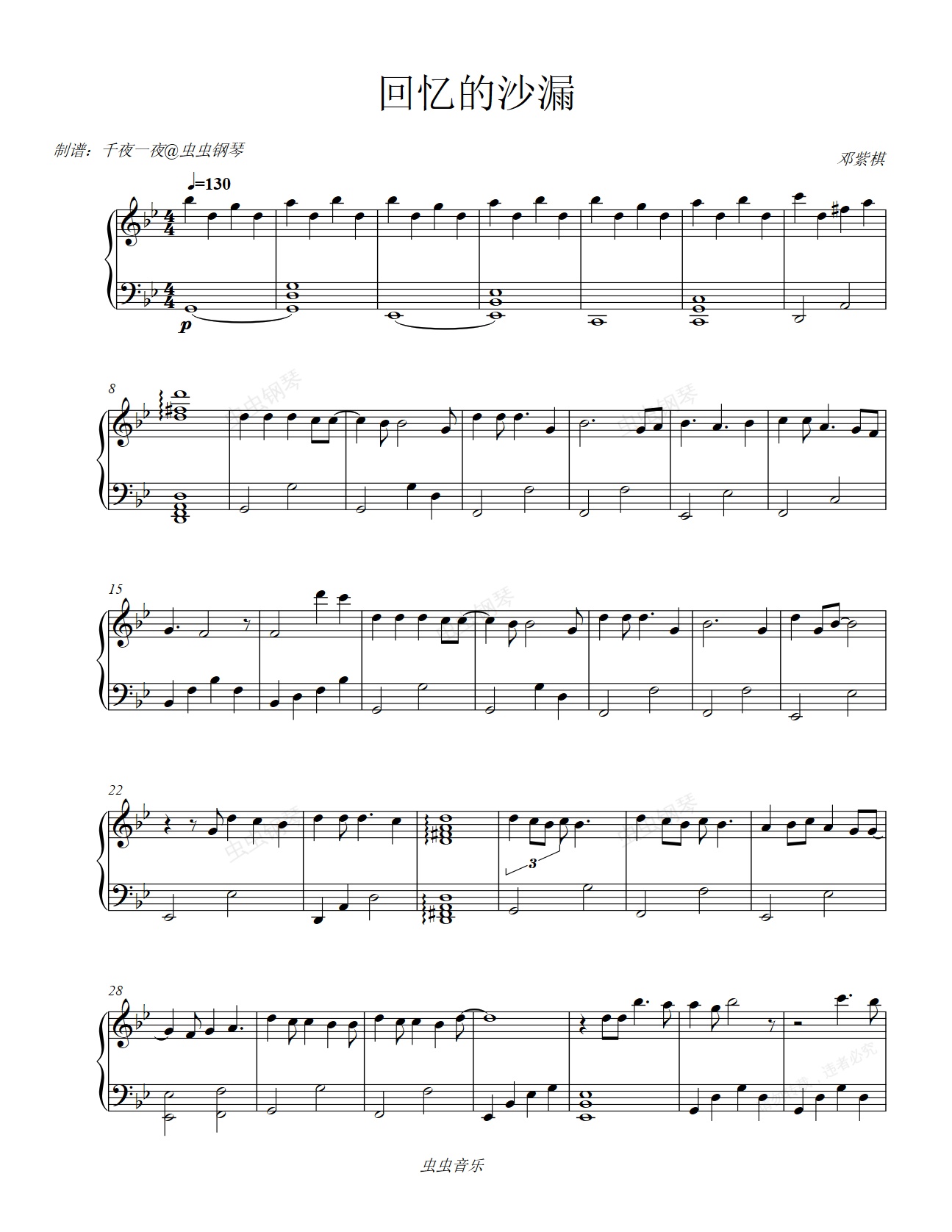 钢琴谱:G.E.M. 邓紫棋-回忆的沙漏