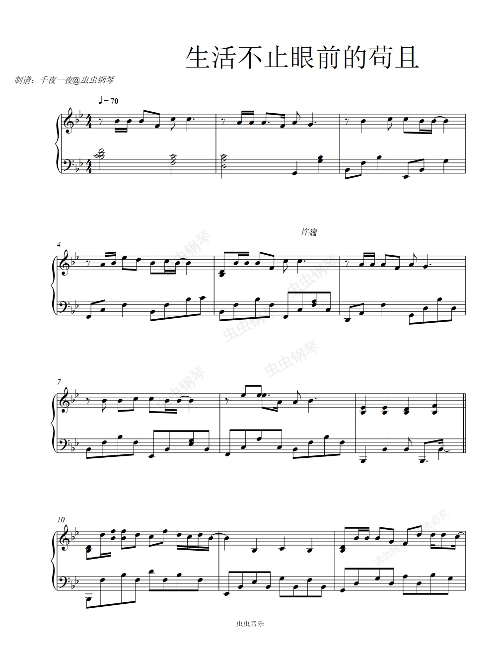 钢琴谱:《生活不止眼前的苟且》 许巍 |“生活不止眼前的苟且 还有诗和远方的田野”