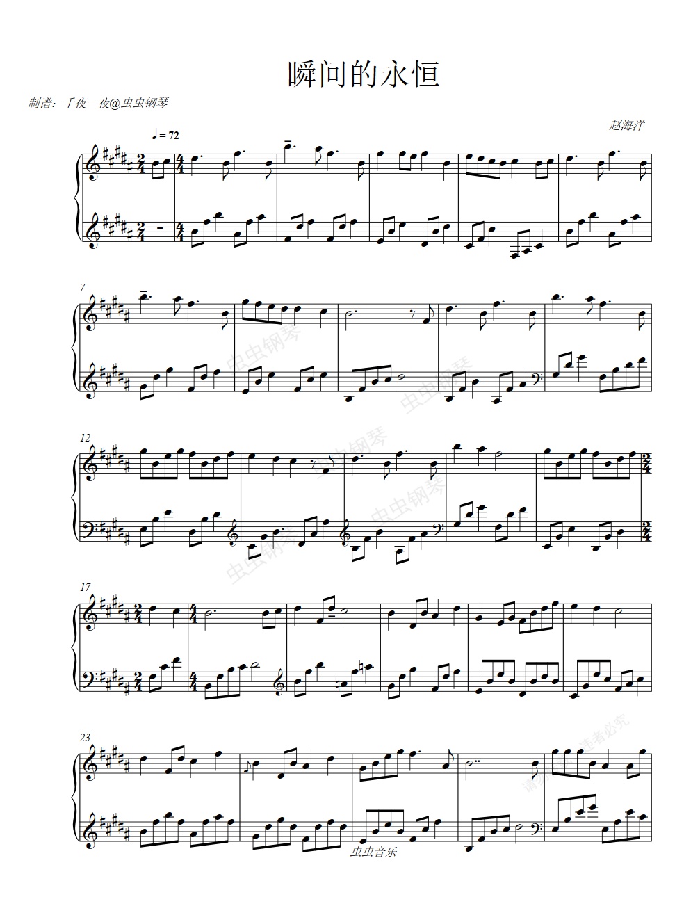 钢琴谱:钢琴演奏 | 夜色钢琴曲《瞬间的永恒》 — 赵海洋