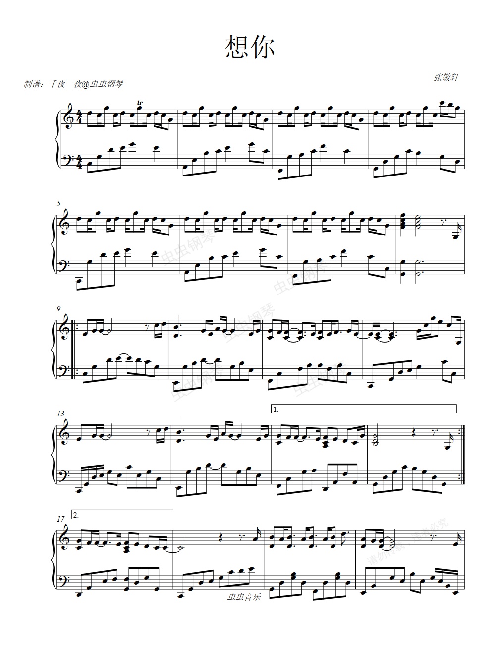 钢琴谱:哥哥 我想你!張敬軒翻唱《想你》追忆张国荣