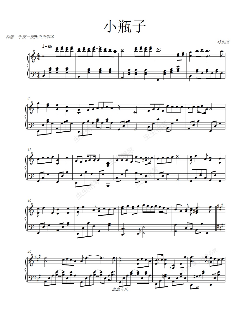 钢琴谱:【林俊杰】《小瓶子》——《假如王子睡着了》电影抒情印象曲