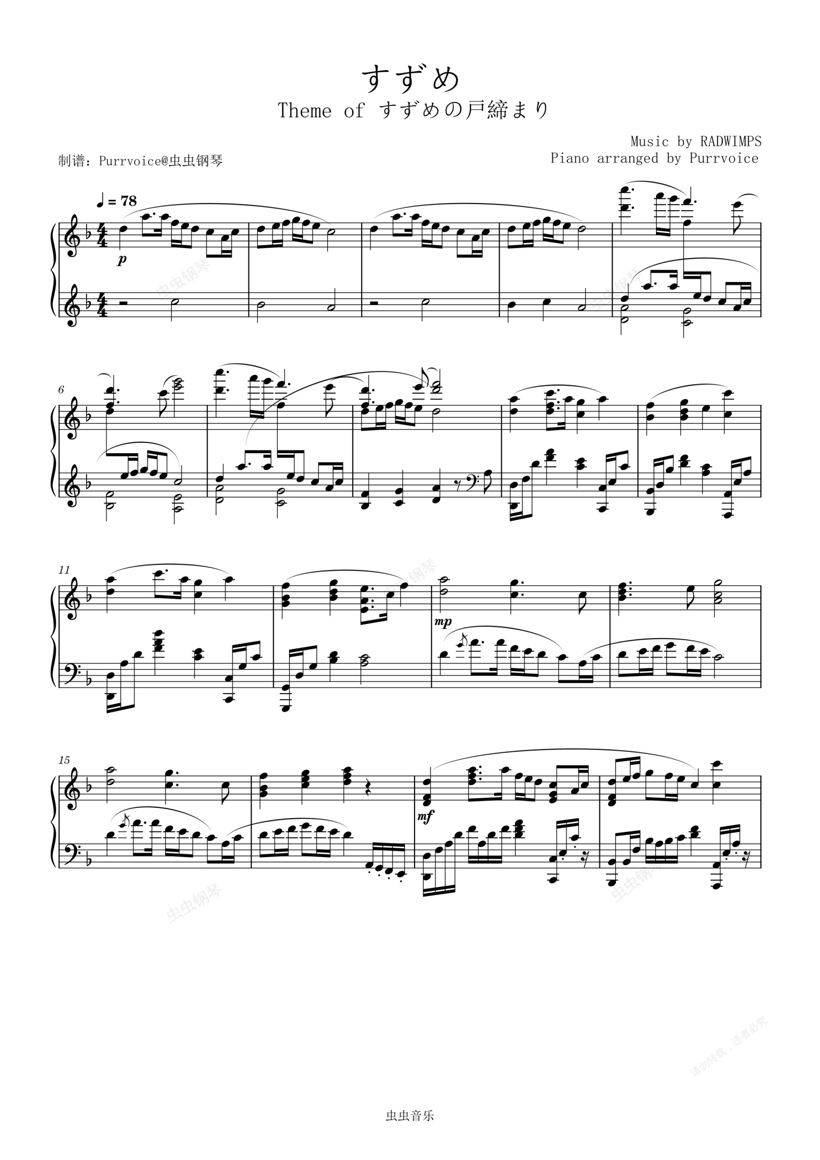 钢琴谱:铃芽之旅主题曲 - すずめ feat.十明