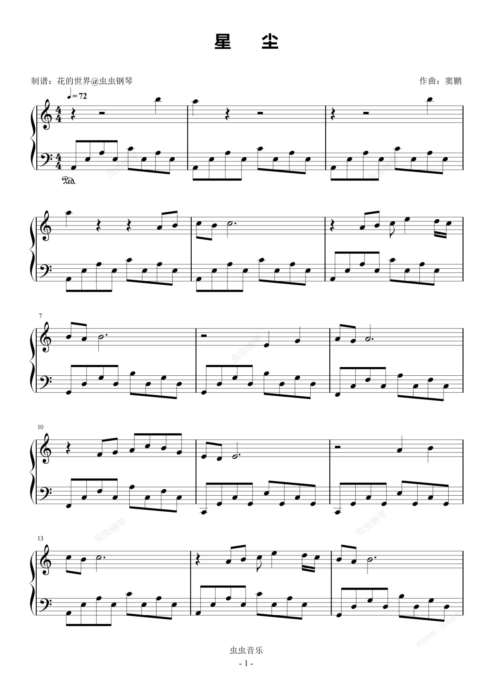 钢琴谱:星尘 C调简易版 周昭妍 深海 片尾曲