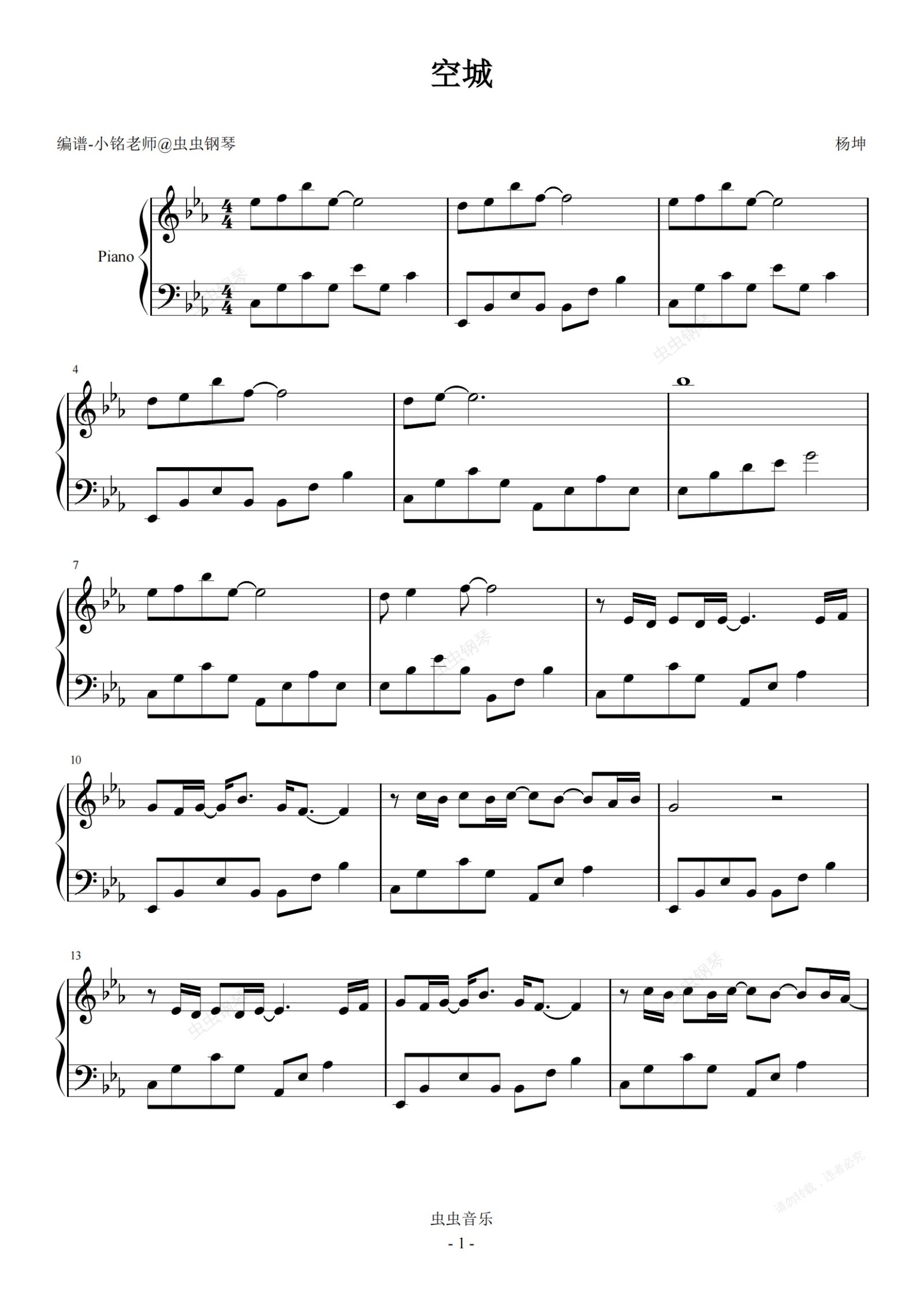 钢琴谱:空城【原调 简易】