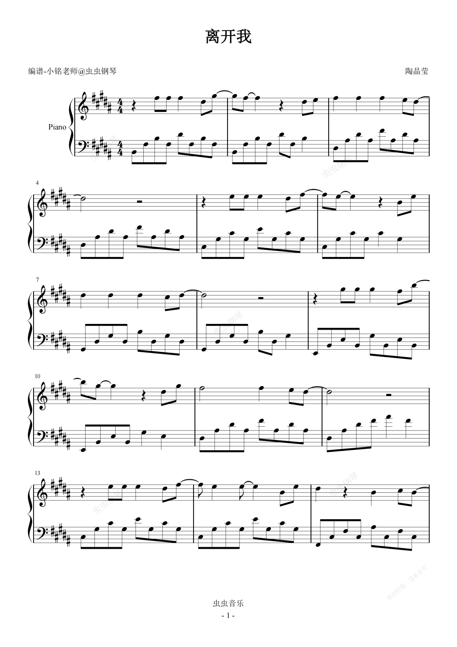 钢琴谱:离开我【原调 简易