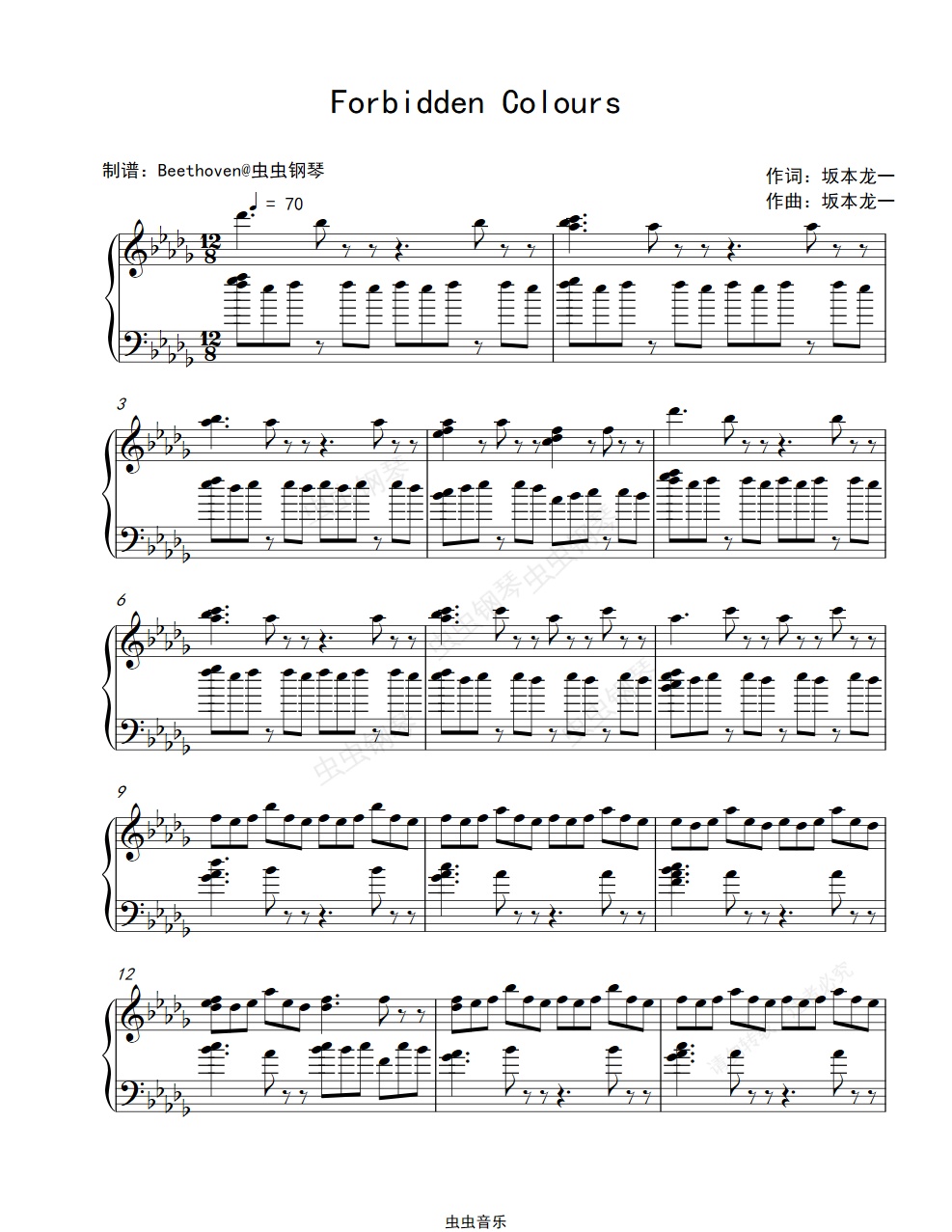 钢琴谱:Forbidden Colours-Merry Christmas Mr. Lawrence插曲-坂本龙一