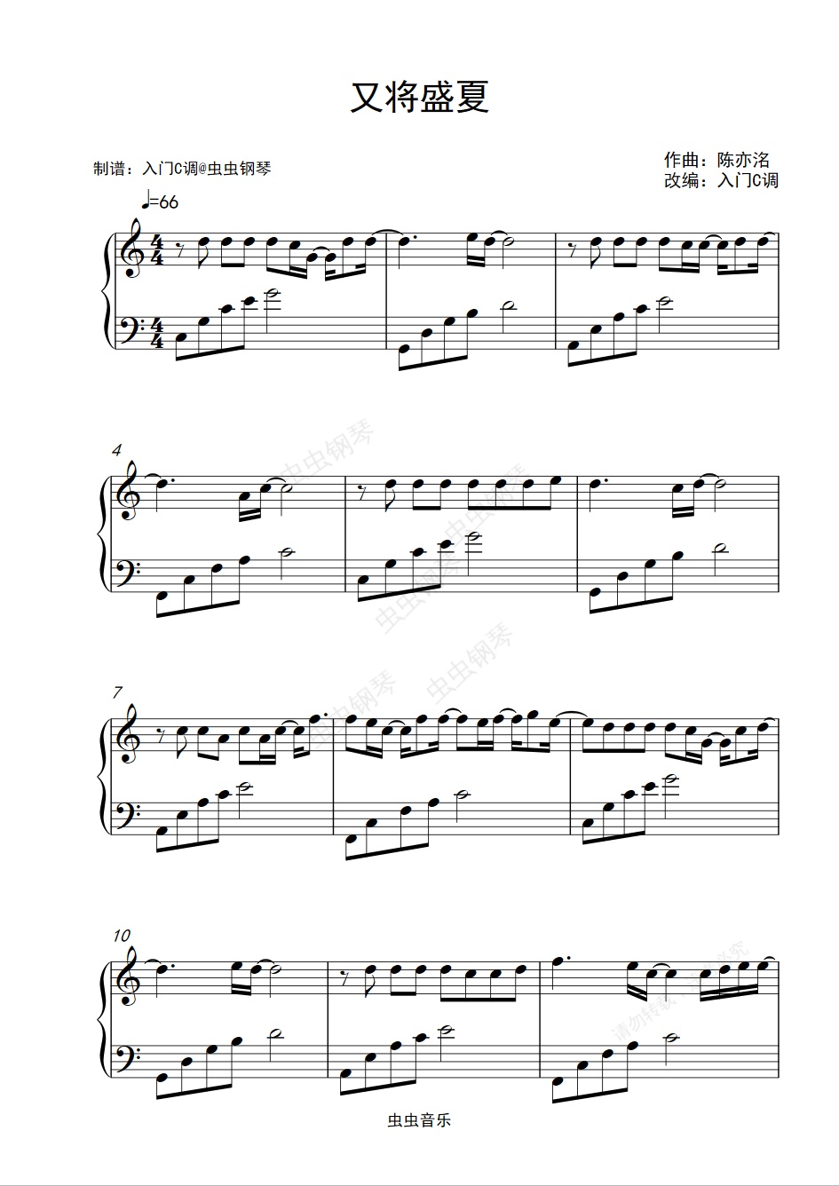 钢琴谱:《又将盛夏》(广播剧《某某》第二季主题曲)入门C调简单版