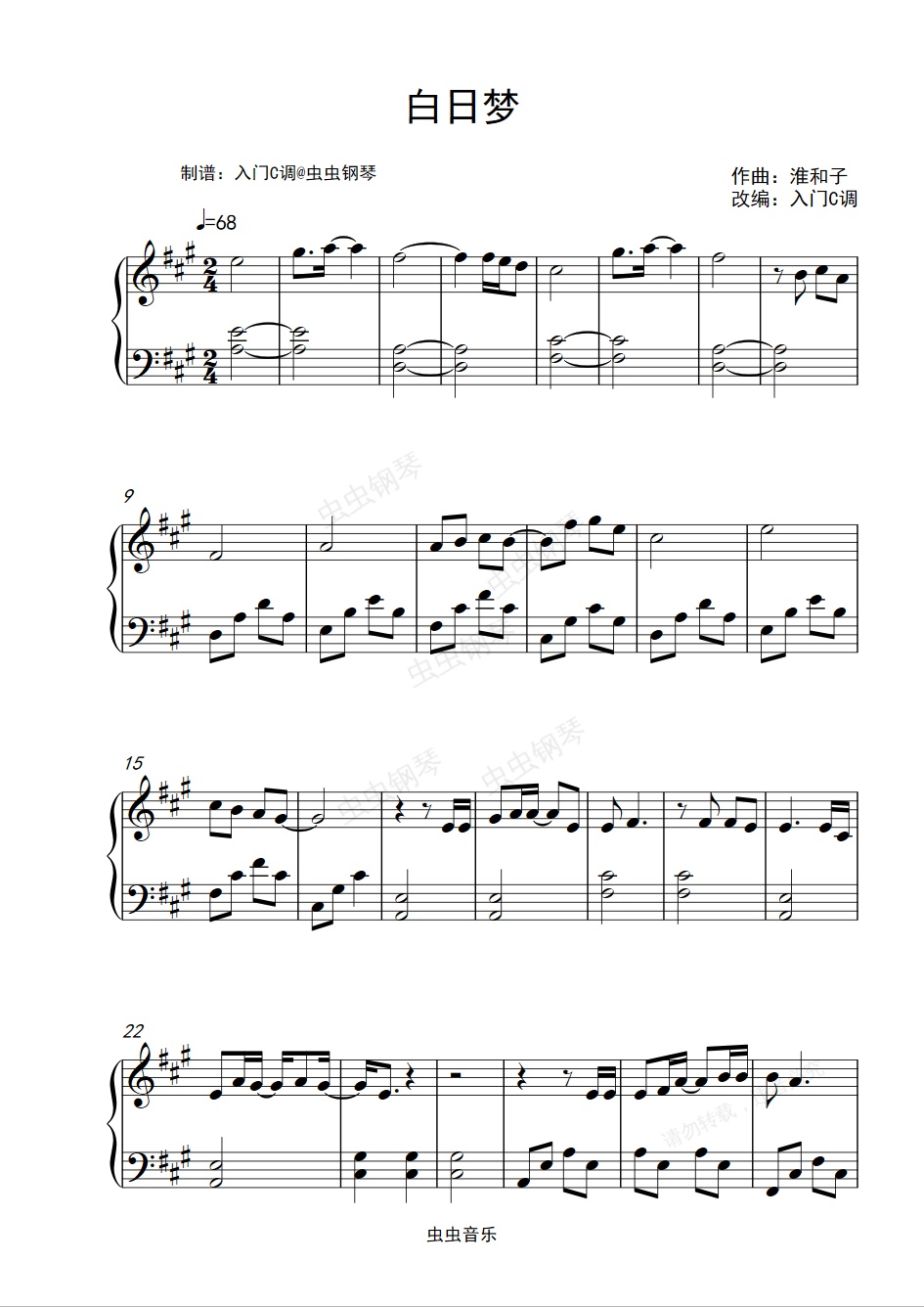钢琴谱:《白日梦》(木苏里《某某》同人曲)原调完整版