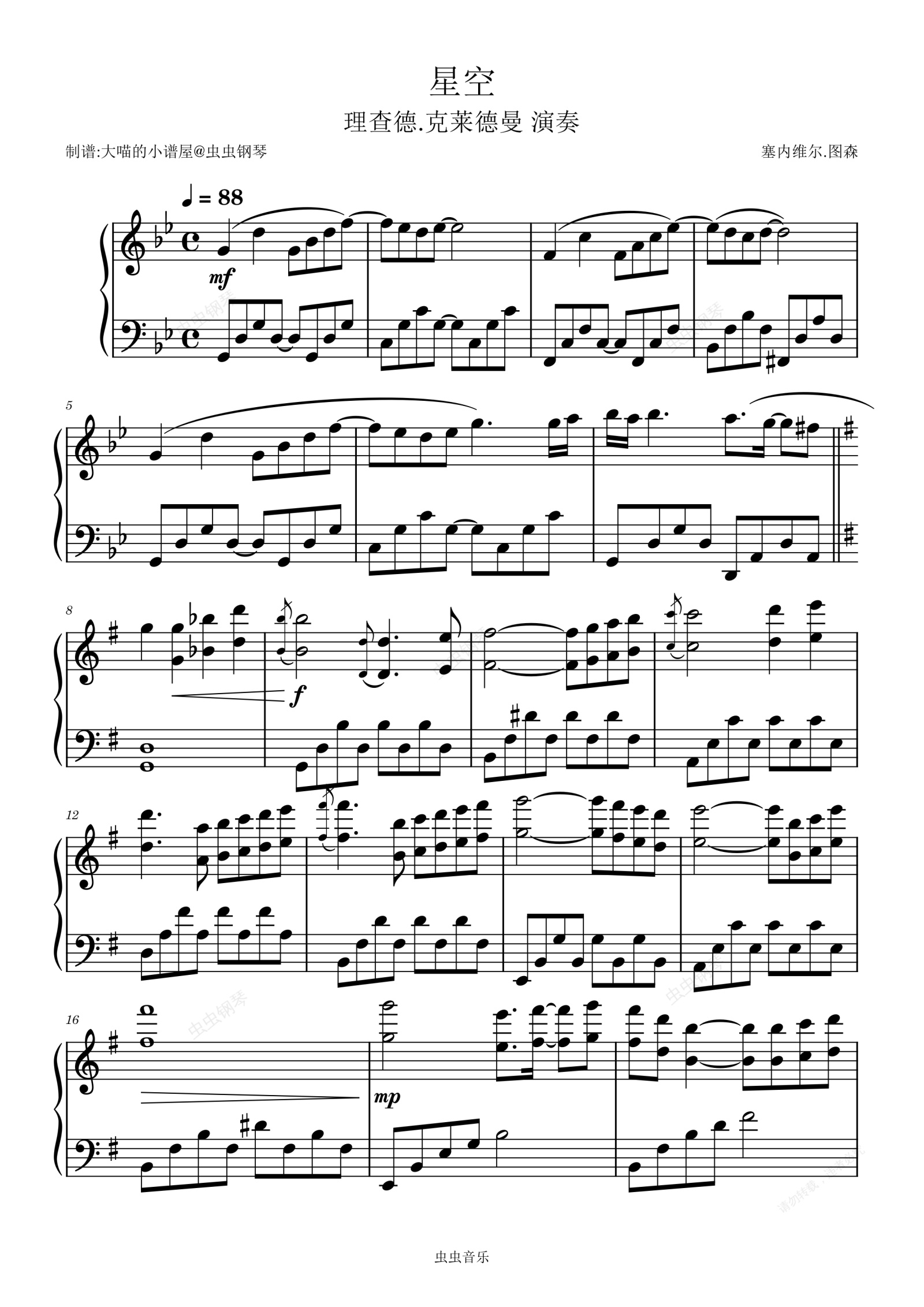 钢琴谱:简化版《星空》理查德.克莱德曼