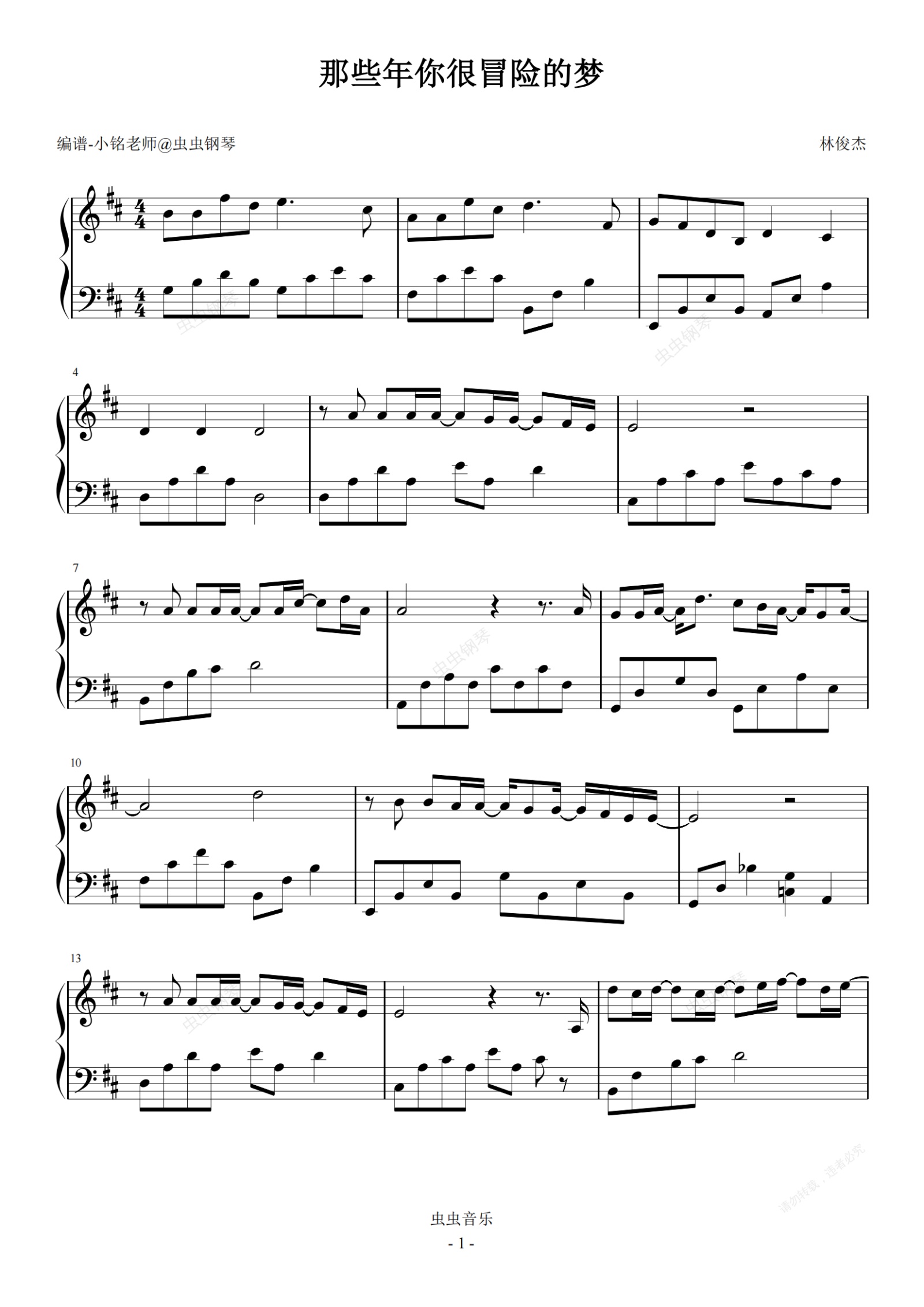 钢琴谱:那些你很冒险的梦【原调 简易】
