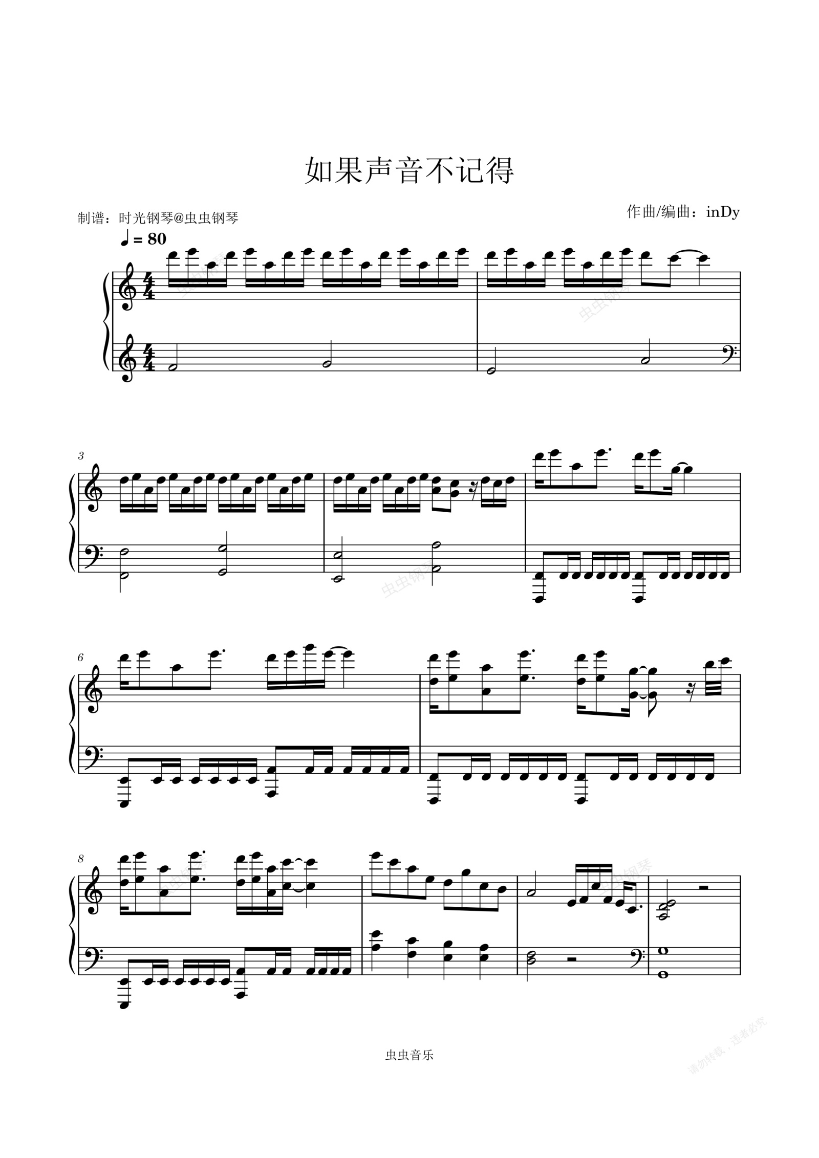 钢琴谱:如果声音不记得 吴青峰 简单动听