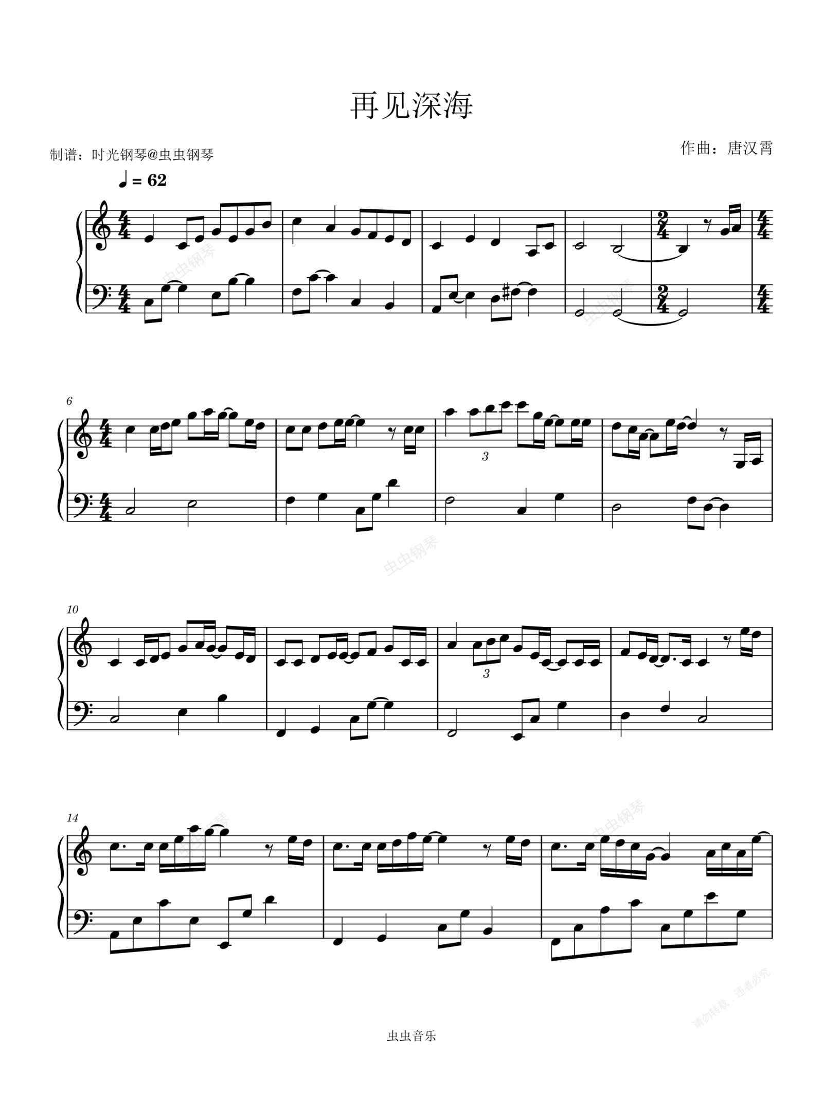 钢琴谱:再见深海 唐汉霄 深海 简单动听