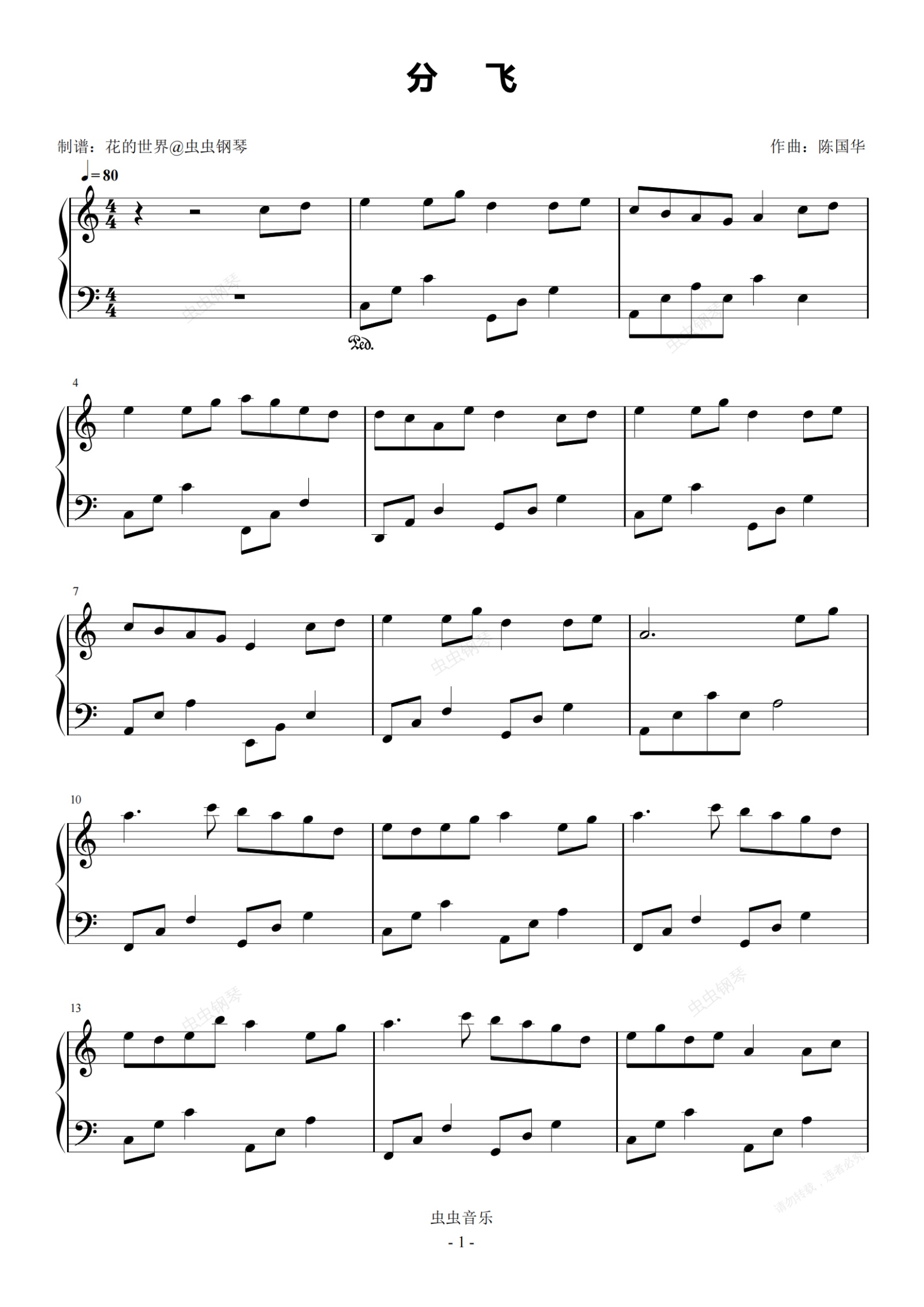 钢琴谱:分飞 C调简易版 徐怀钰 流行经典