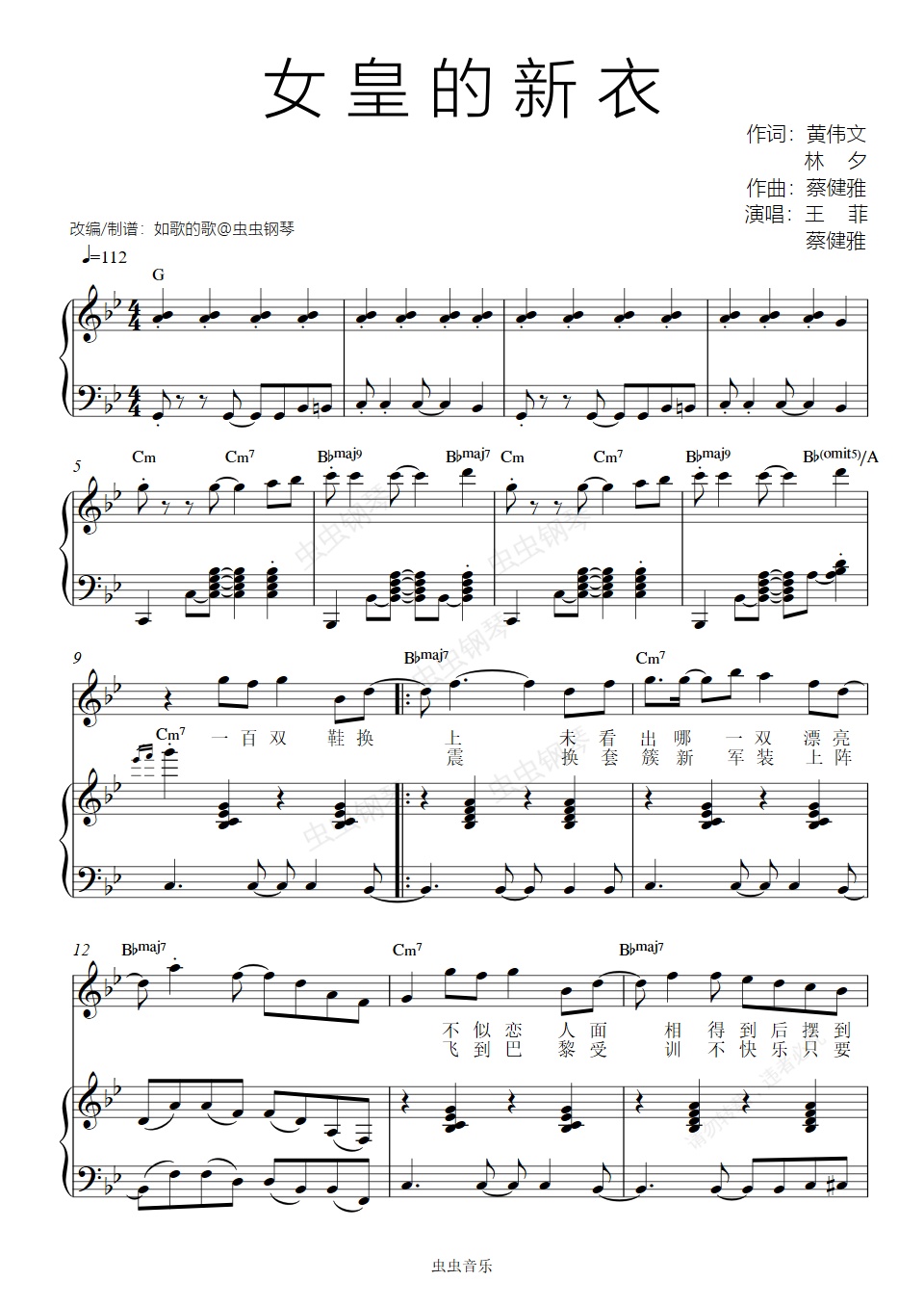 钢琴谱:女皇的新衣/打错了旋律+钢伴王菲原调复刻附词功能