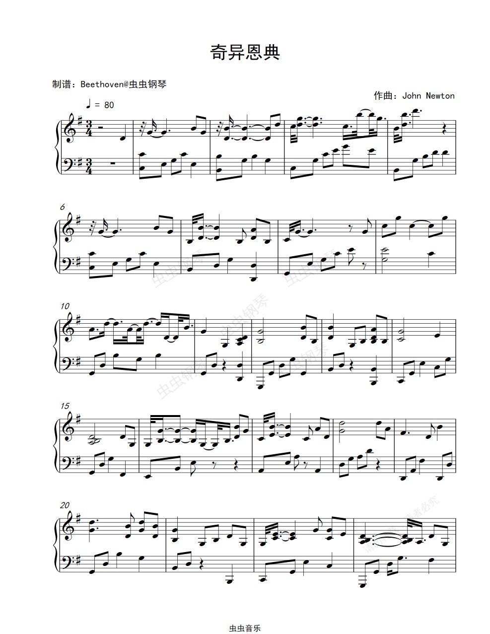 钢琴谱:奇异恩典-Amazing Grace-唯美好听版-John Newton