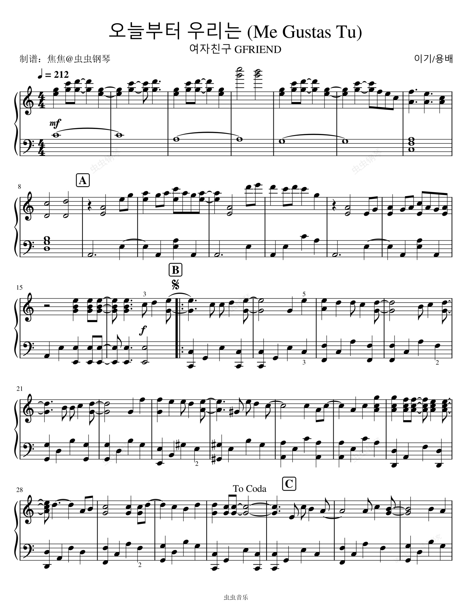 钢琴谱:Me Gustas Tu (KR ver.) - GFRIEND (여자친구)