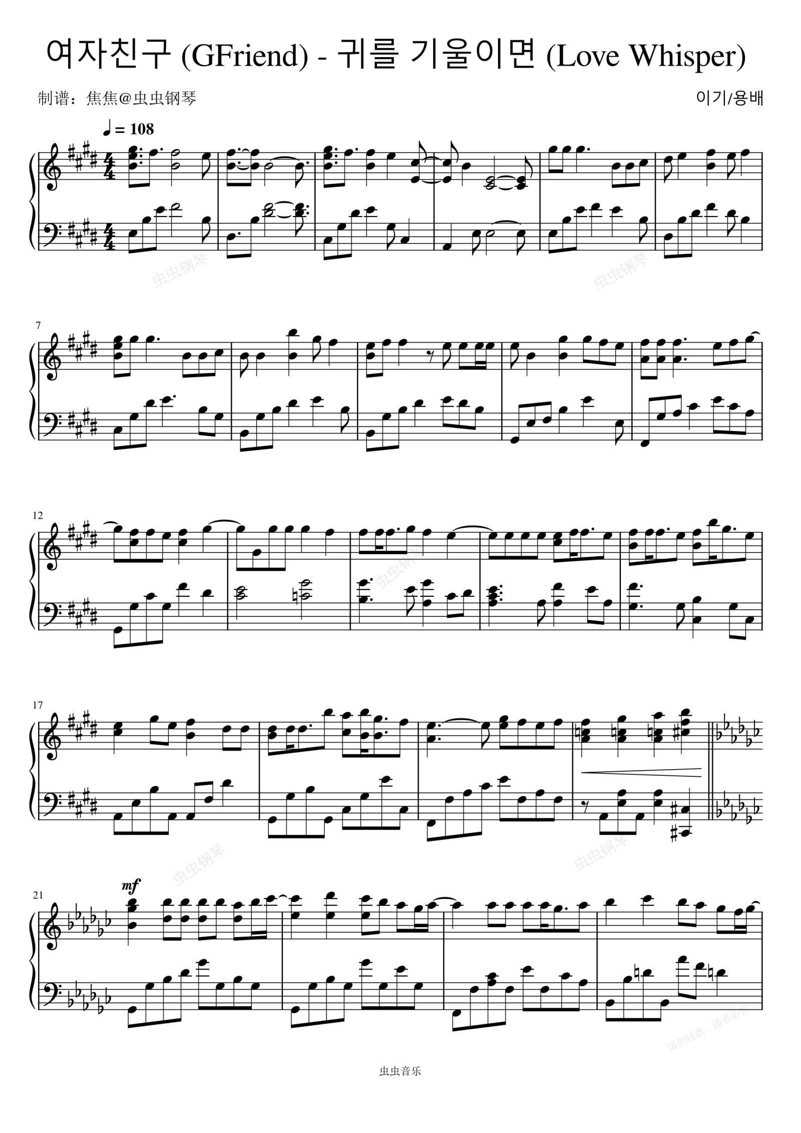 钢琴谱:귀를 기울이면(LOVE WHISPER) - GFRIEND (여자친구)