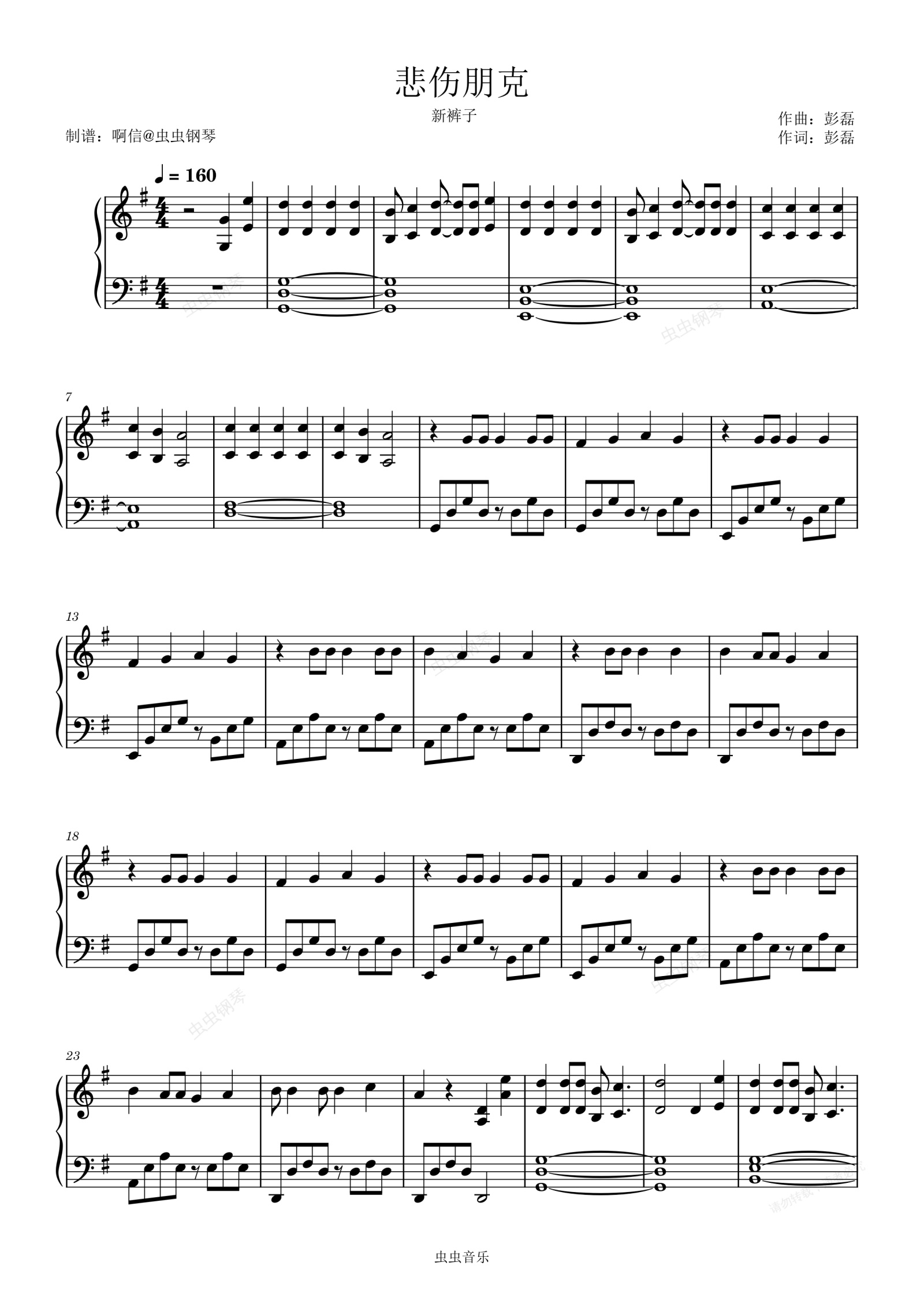 钢琴谱:悲伤朋克-新裤子-原版-啊信编配