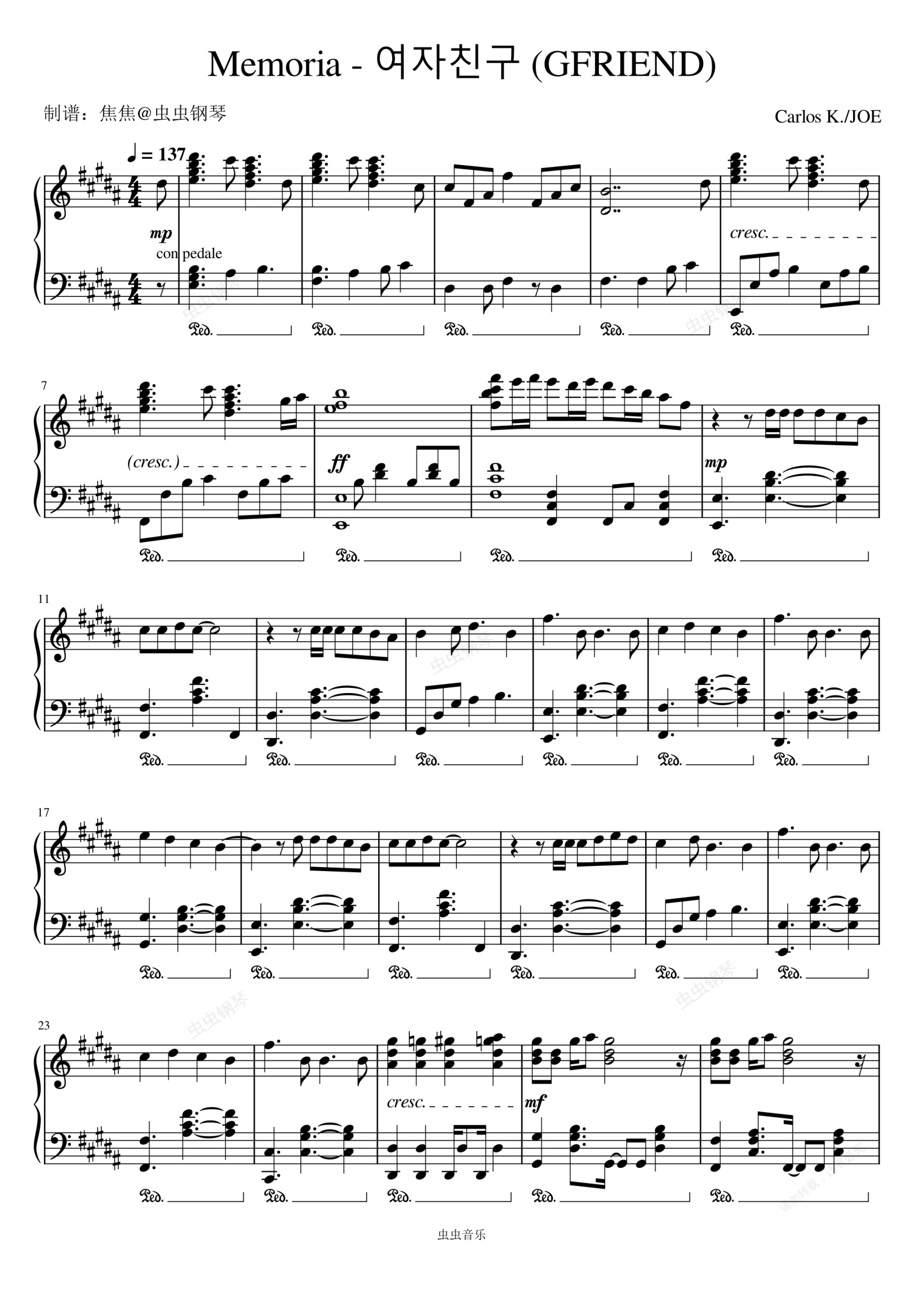 钢琴谱:Memoria - 여자친구 (GFRIEND)
