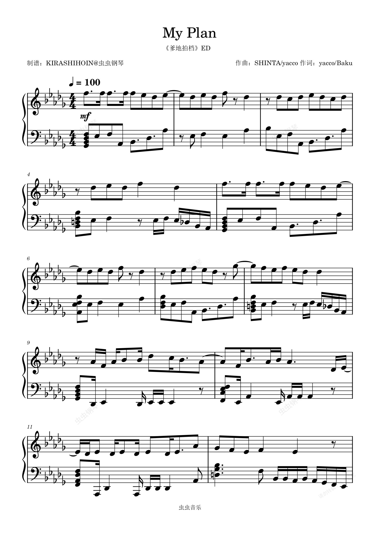 钢琴谱:My Plan(《爹地拍档》ED/片尾曲)- DURDN